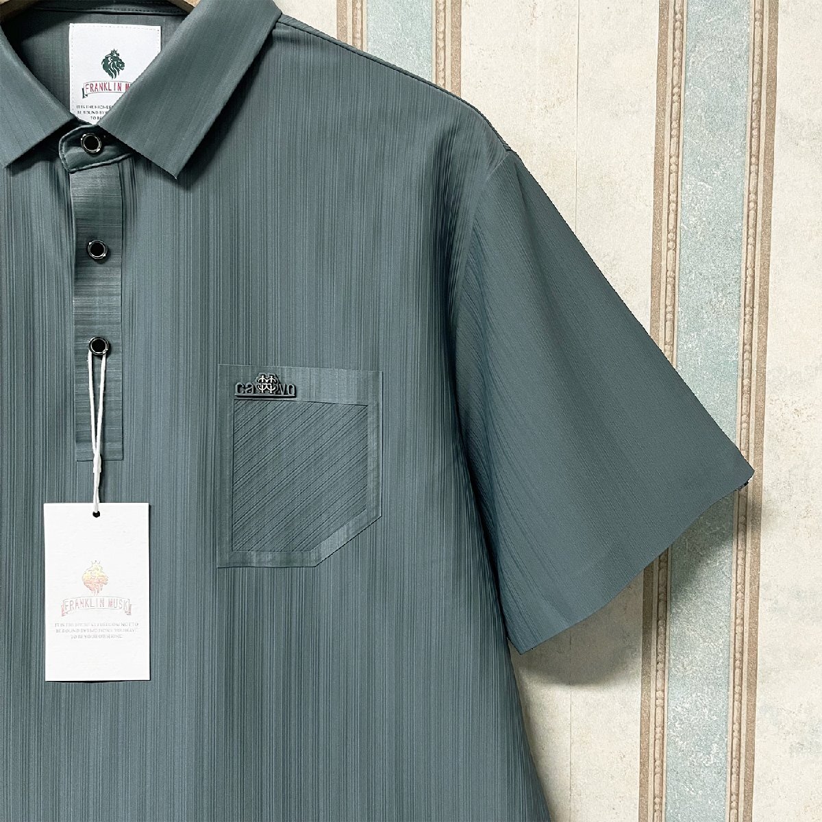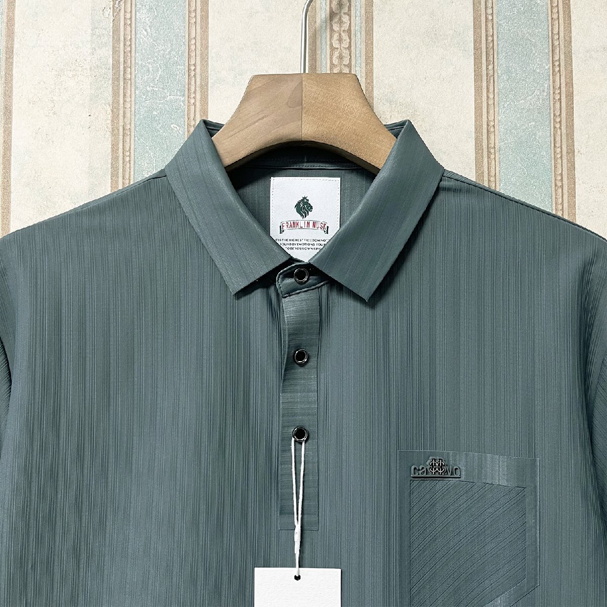 上品 定価3万 FRANKLIN MUSK・アメリカ・ニューヨーク発 半袖 ポロシャツ シルク混 滑らか 涼しい 通気 速乾 無地 トップス ゴルフ メンズ サイズ3