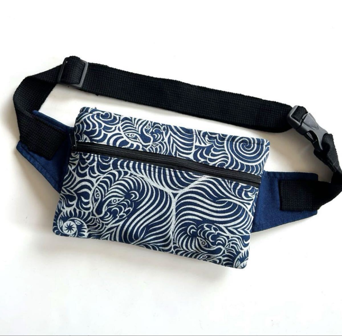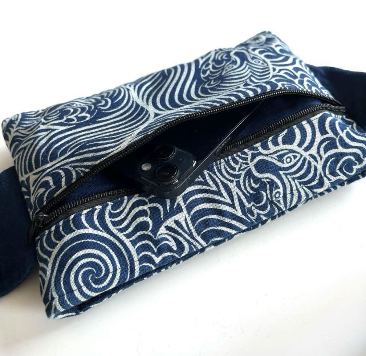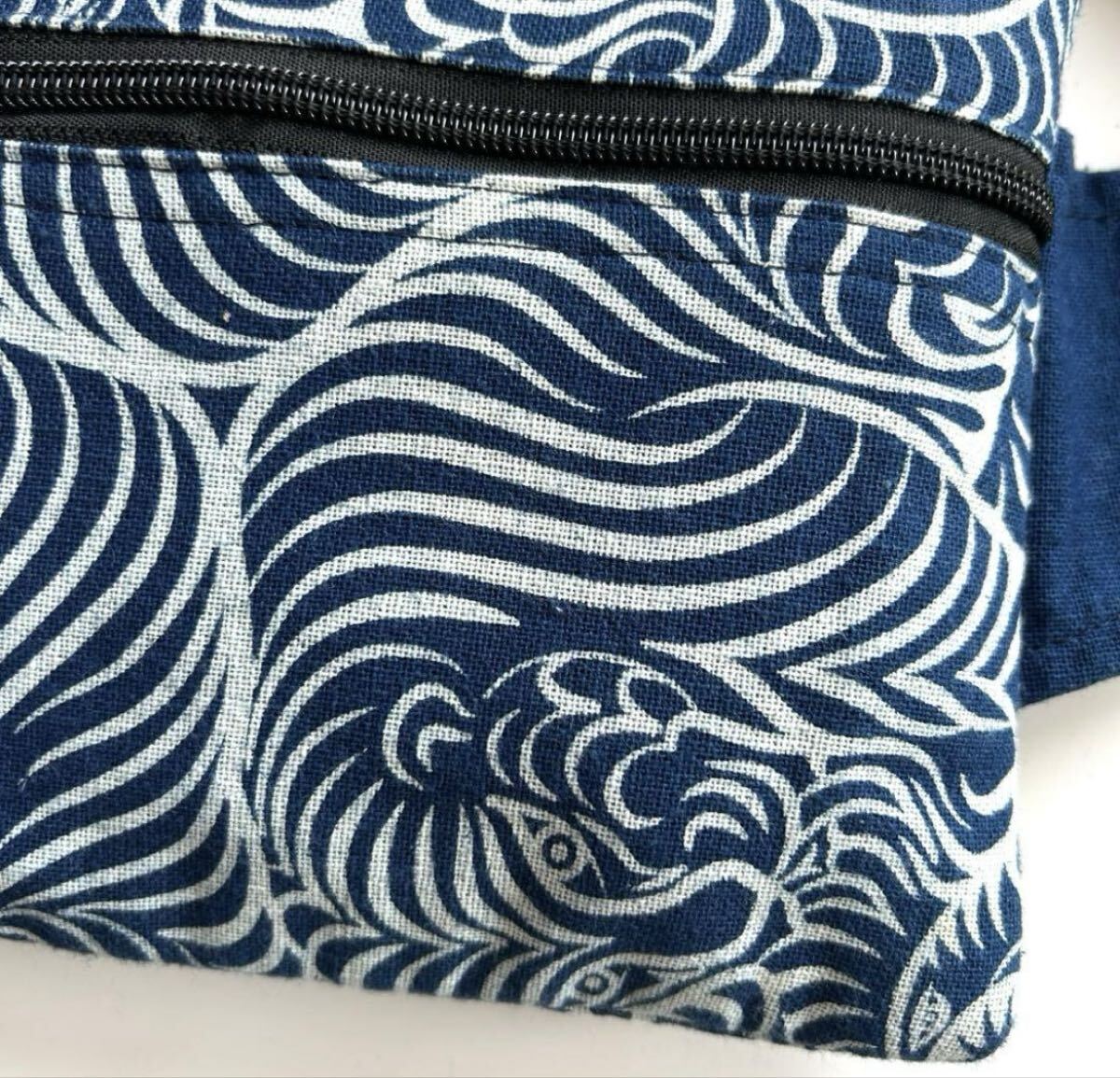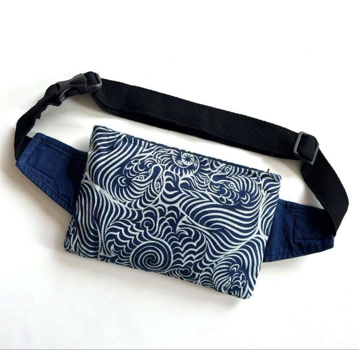 チェンマイで買い付けしてきた藍染コットンのボディバッグです。