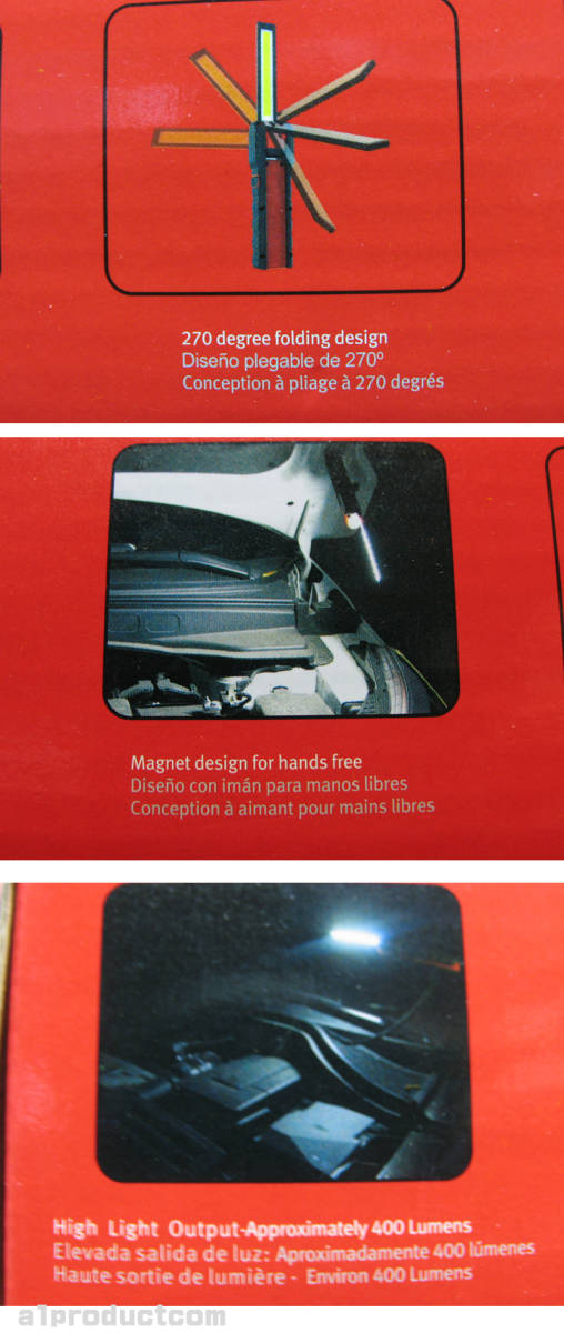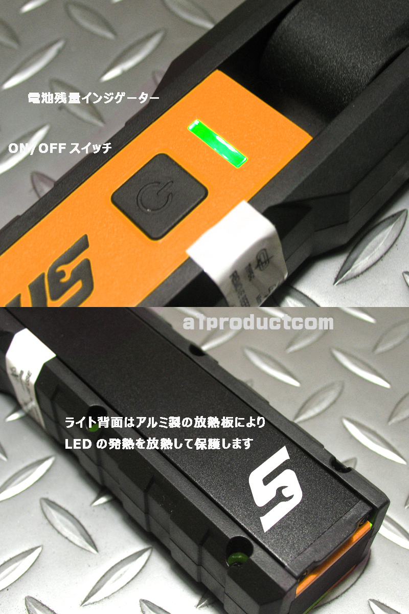 ピボットスイングアームで角度調整が自在にできて、底面と背面にマグネットが付いているので、作業時はエンジンフードなどに張り付けて使えるので両手が空きます!。また折りたたんだ状態ではスポットLEDライトが遠い距離を照らすことができるコンパクトなポケットサイズの作業灯です!