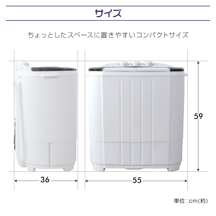 【安心の1年保証付き】 コンパクトだから場所も取らずにちょこっと洗いで節水もできます。 少量の洗濯物や洗い分けに最適! 二槽式だからしっかり洗えてしっかり脱水可能! ★こんな場合にオススメ!★ ・ガーデニングや作業で汚れた軍手やエプロンの洗濯 ・学校や部活動で汚れたシューズや服の下洗い ・ベビー用衣類の洗濯 ・海水浴後の水着の洗濯 ・別洗い用のサブ機として ■商品コード:NAW002BE ■商品仕様 カラー:ベージュ サイズ:(約)幅550×奥行360×高さ590mm 重量:(約)(約)9000g 洗濯容量:3.6kg 電源:AC100V 50/60Hz コード長:(約)1.5m 防水性能:IPX4 ■内容 本体 脱水用おさえさえフタ 吸水ホース ■注意事項 ・本製品の脱水は、簡易脱水となっております。あらかじめご了承ください。 ・水がこぼれても大丈夫な風呂場やベランダなどでのご使用をオススメします。 ・分解や修理・改造をしないでください。 ・保管する時は、風雨にさらされる場所や湿気の多い場所に置かないでください。 ・平らでない場所や高い場所で使用しないでください。 ・濡れた手で電源コードを抜き差ししないでください。 ・小さなお子様の手の届くところで保管、使用しないでください。 ・商品は、モニターによって色合いが異なって見える場合があります。 ・仕様・デザインは改良のため予告なく変更することがあります。 ■保障期間 1年間 【新品未使用品です】 |