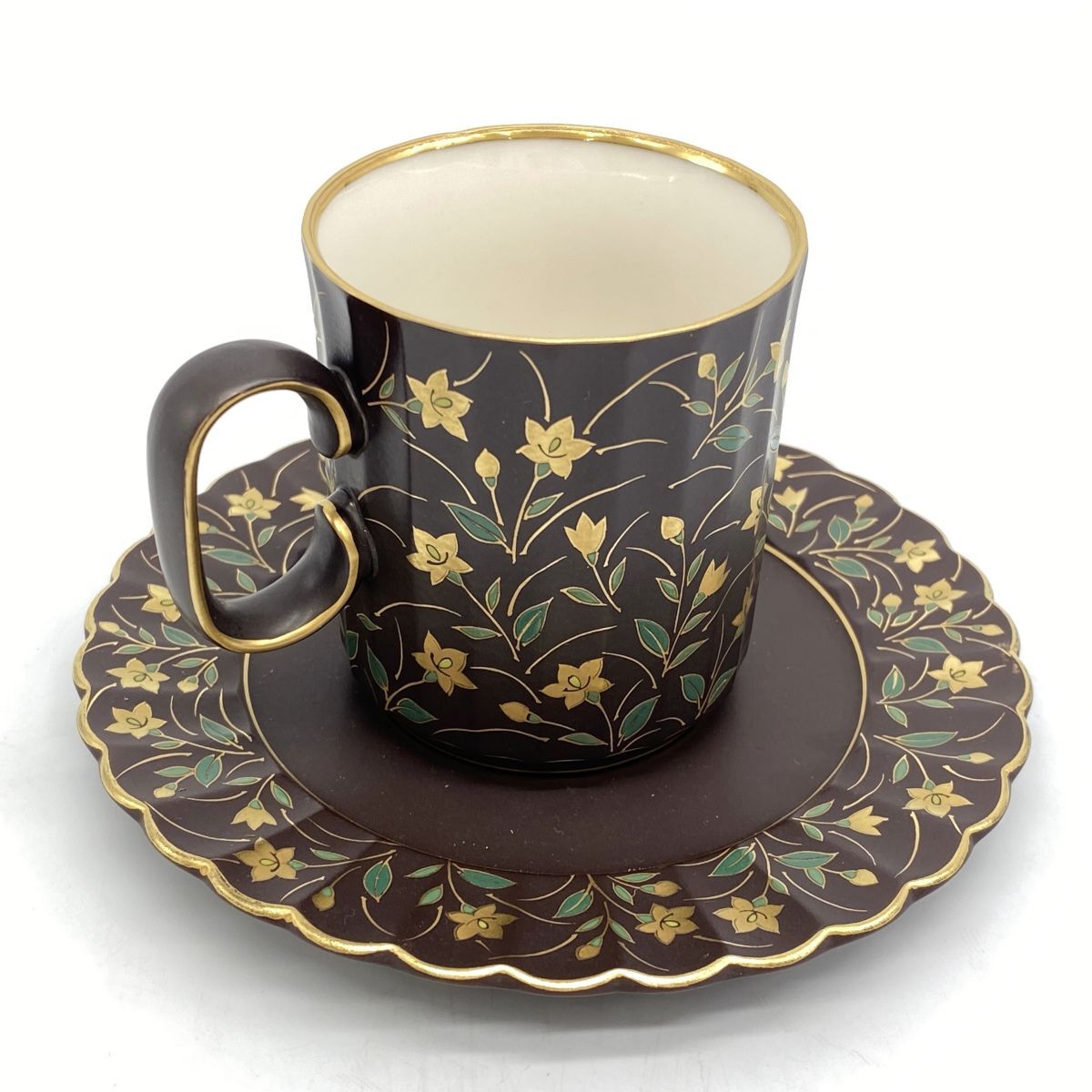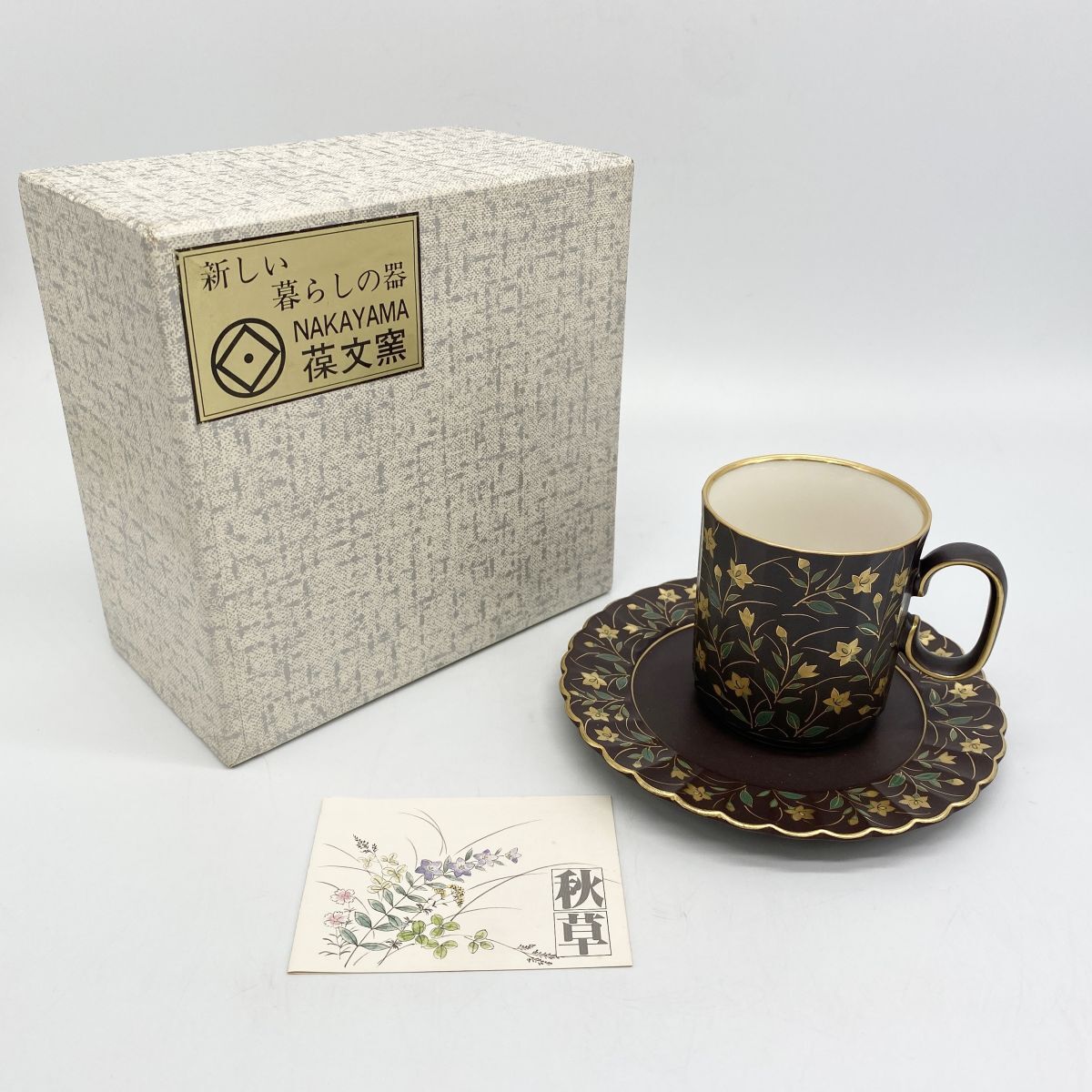 | 葆文窯 ナカヤマ陶器 コーヒー椀皿 ブラウン 金彩 桔梗 カップ&ソーサー NAKAYAMA裏印 箱付 陶器 工芸品 経年保管品 中古品 梱包60サイズ | ||