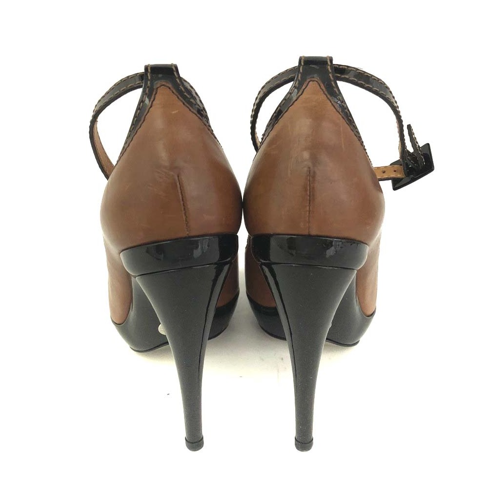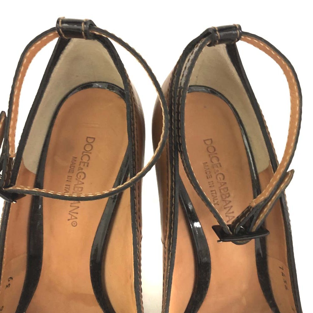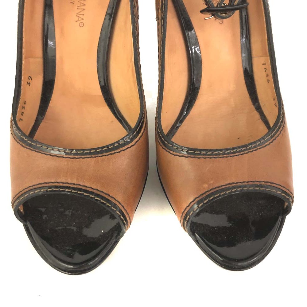 1円 DOLCE&GABBANA ドルチェ&ガッバーナ 7436 ピープトゥヒール サイズ39 本革 レザー ハイヒール パンプス 靴 レディース ブラウン /JP2291