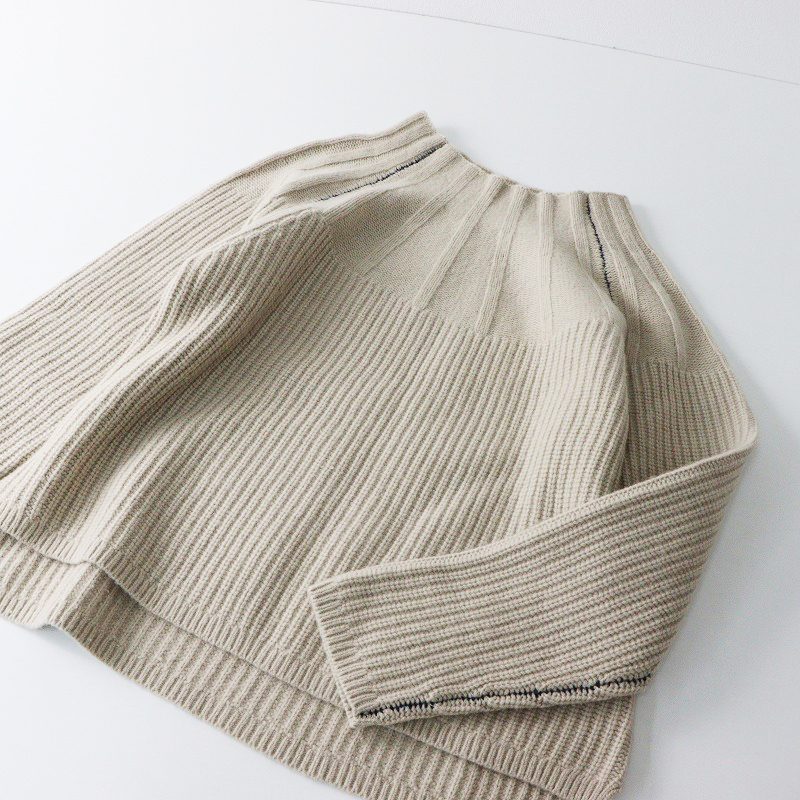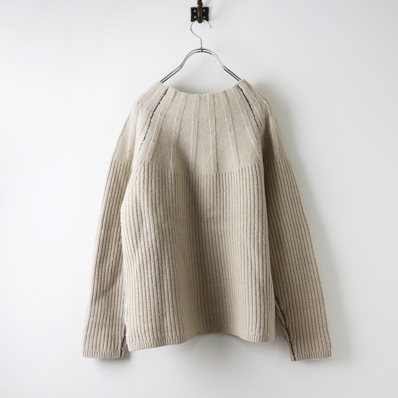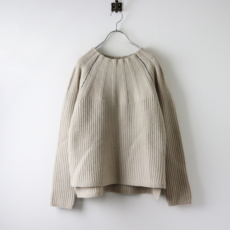2022AW パラスパレス pal'las palace ウール畦編み求心プルオーバー 0|アイボリー ニット セーター トップス ラグラン【2400014575828】