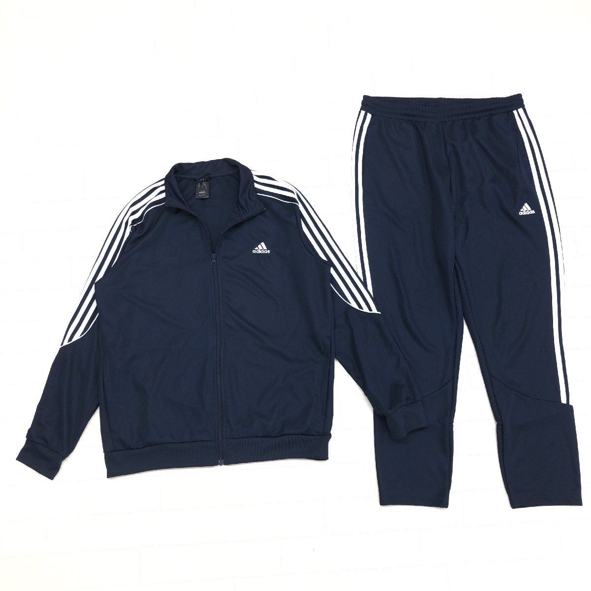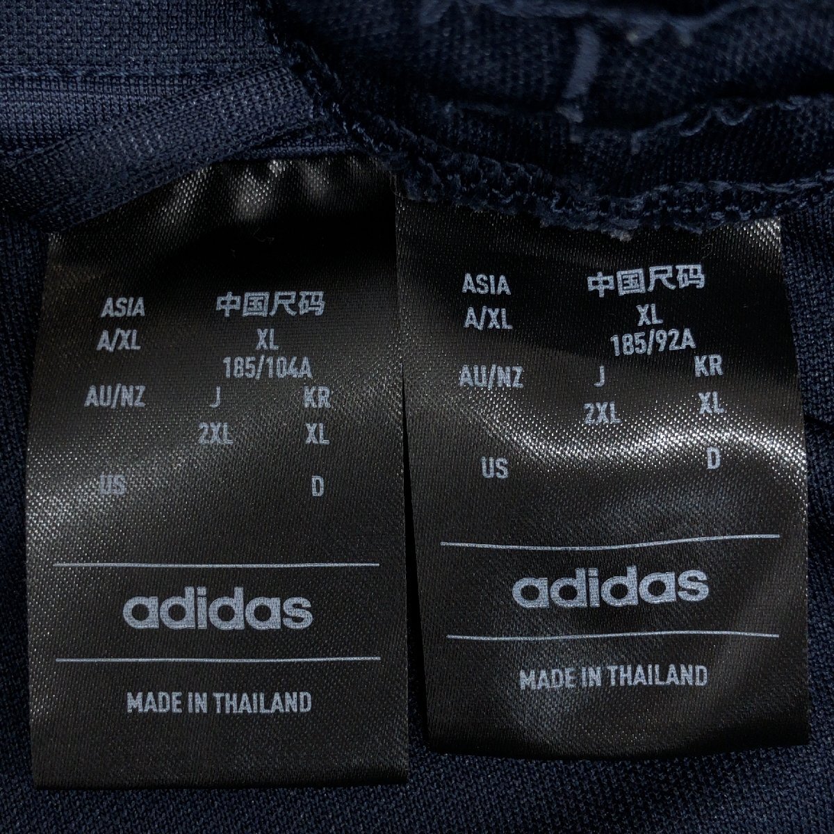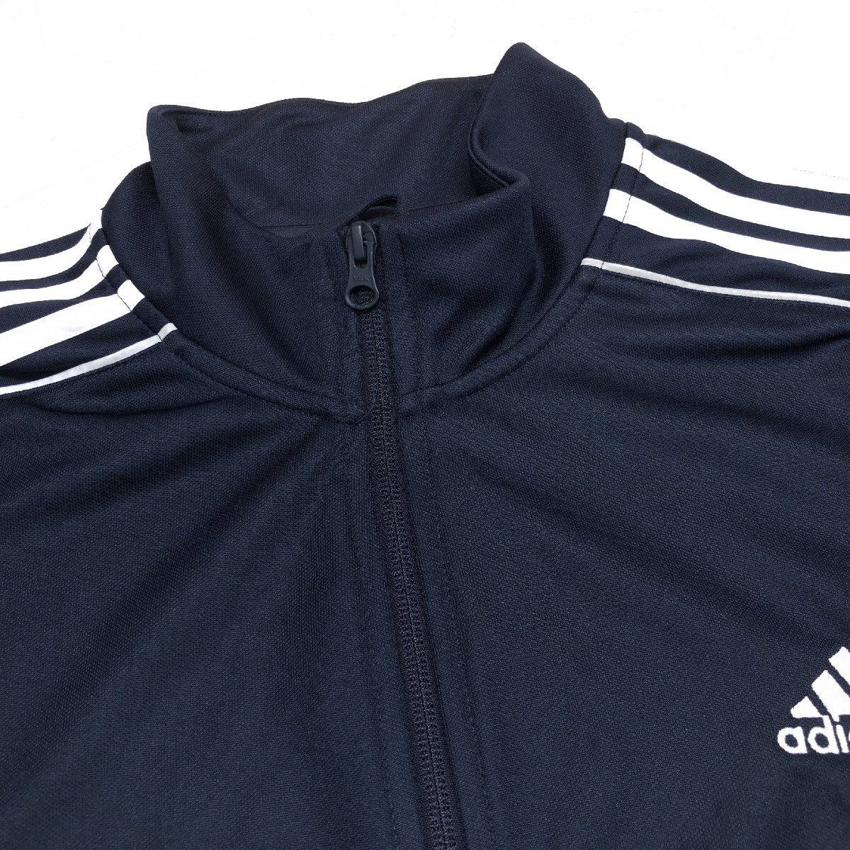 ●adidas アディダス ロゴ刺繍 3ストライプ ジャージ 上下セットアップ 2XL 濃紺 ネイビー ジャケット パンツ 特大 大きいサイズ 3L メンズ
