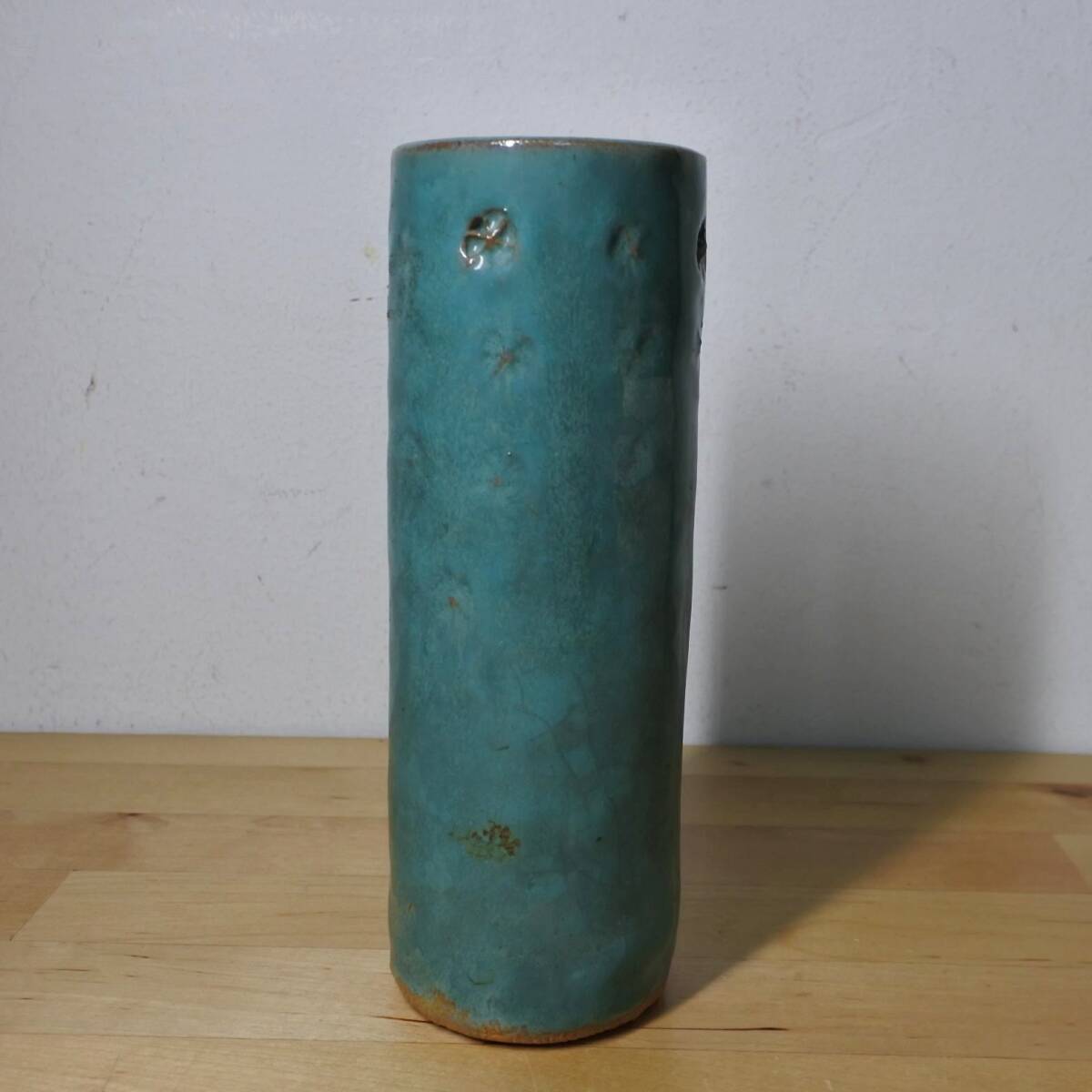 焼物の掛花入れと竹籠の花入れ、花器2点。