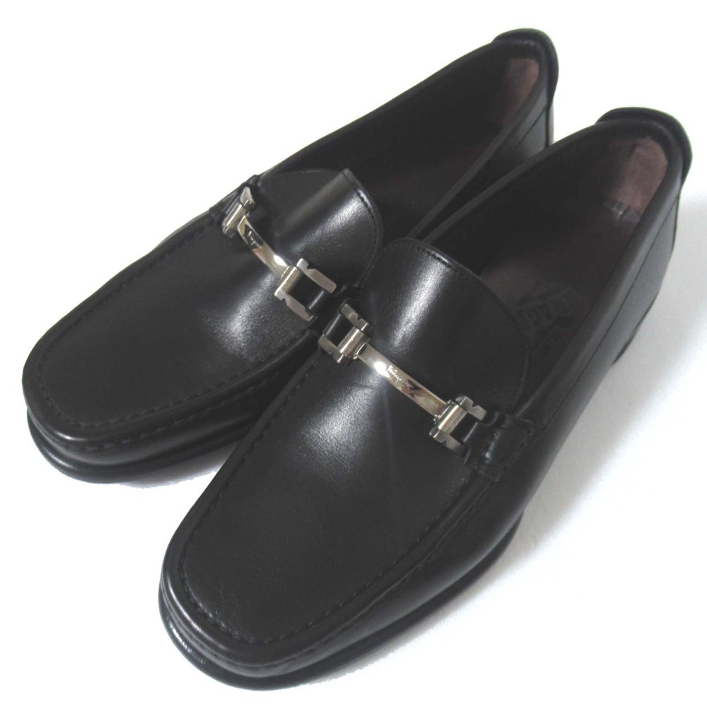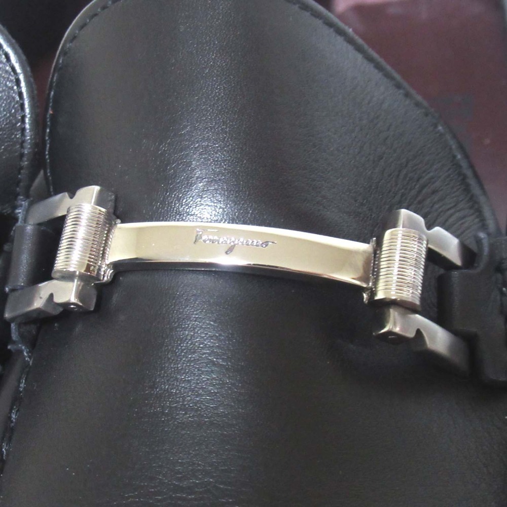 美品 Salvatore Ferragamo サルヴァトーレフェラガモ レザー ローファー ビジネスシューズ サイズ6.5 約24.5cm ブラック シルバー金具