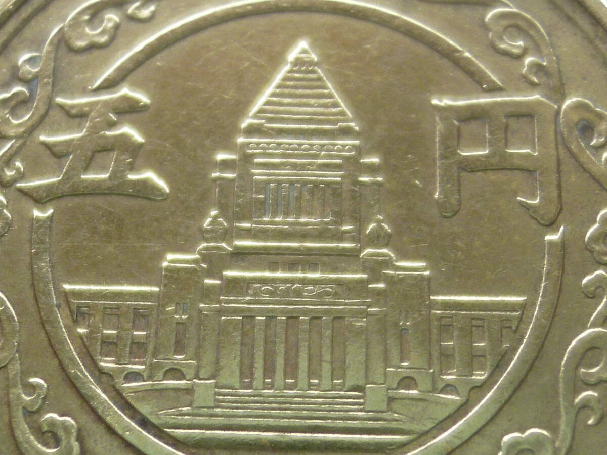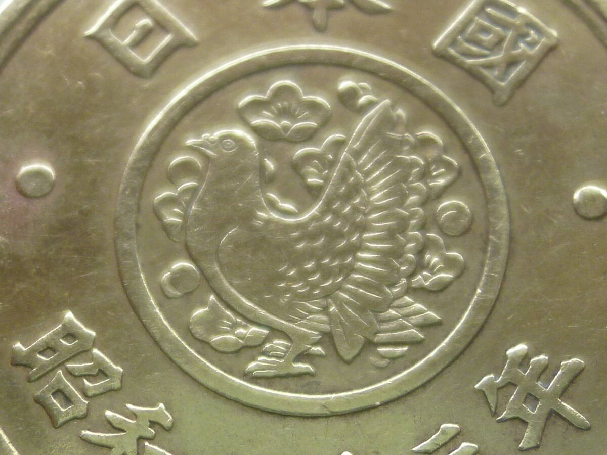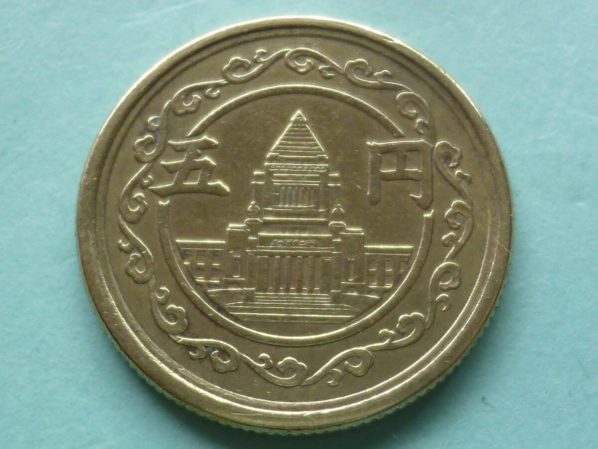 ●穴なし5円硬貨 黄銅貨●国会議事堂・鳩・梅花● 昭和23年/ ふで5/ フデ5/ 黄銅貨/穴なし/ 5円玉/