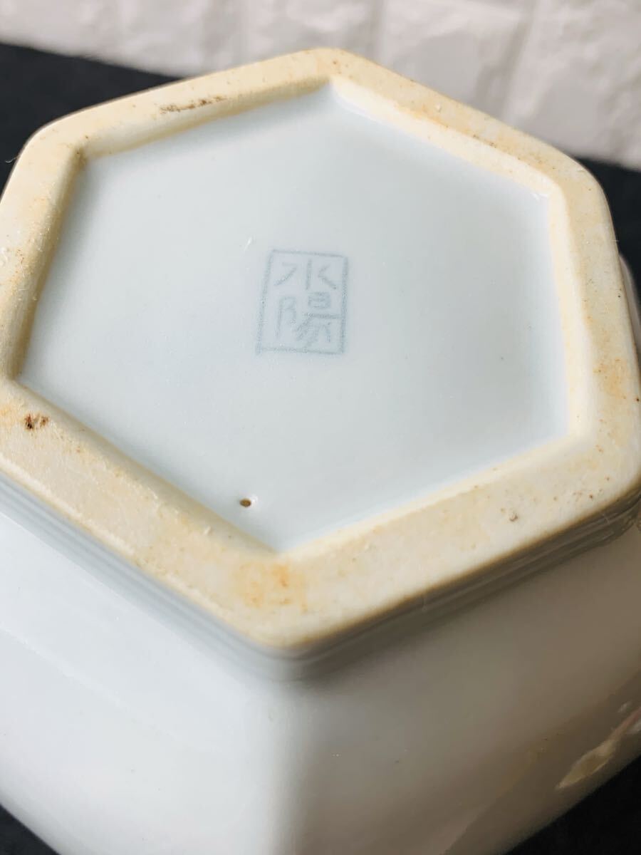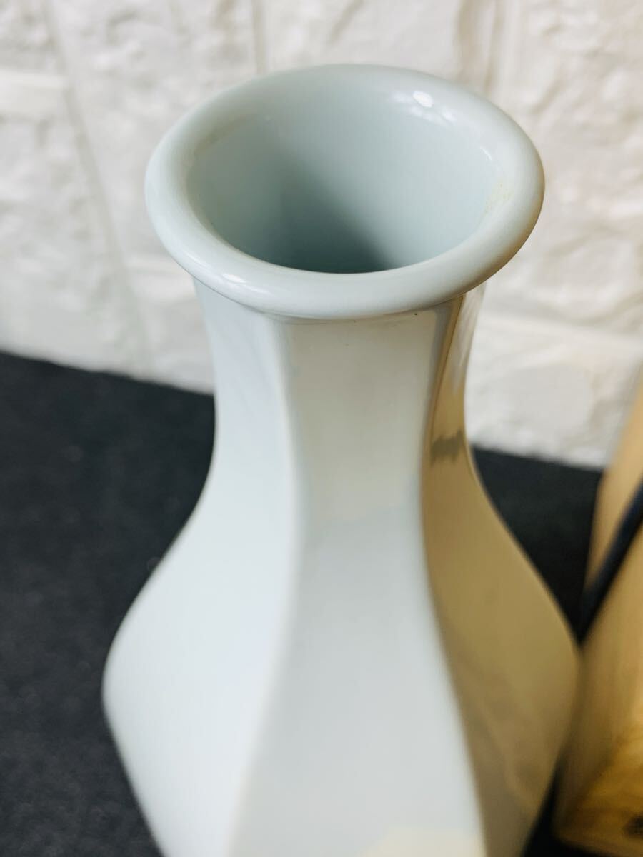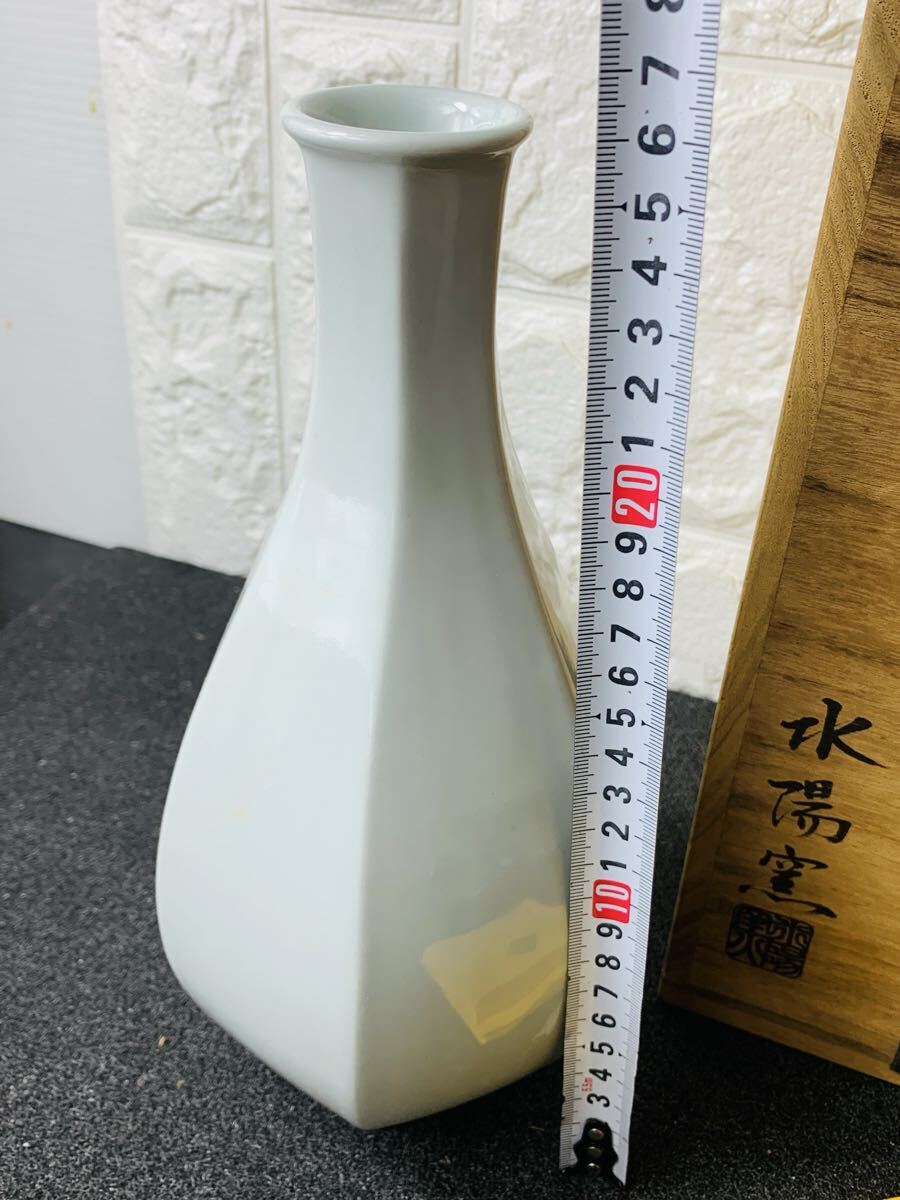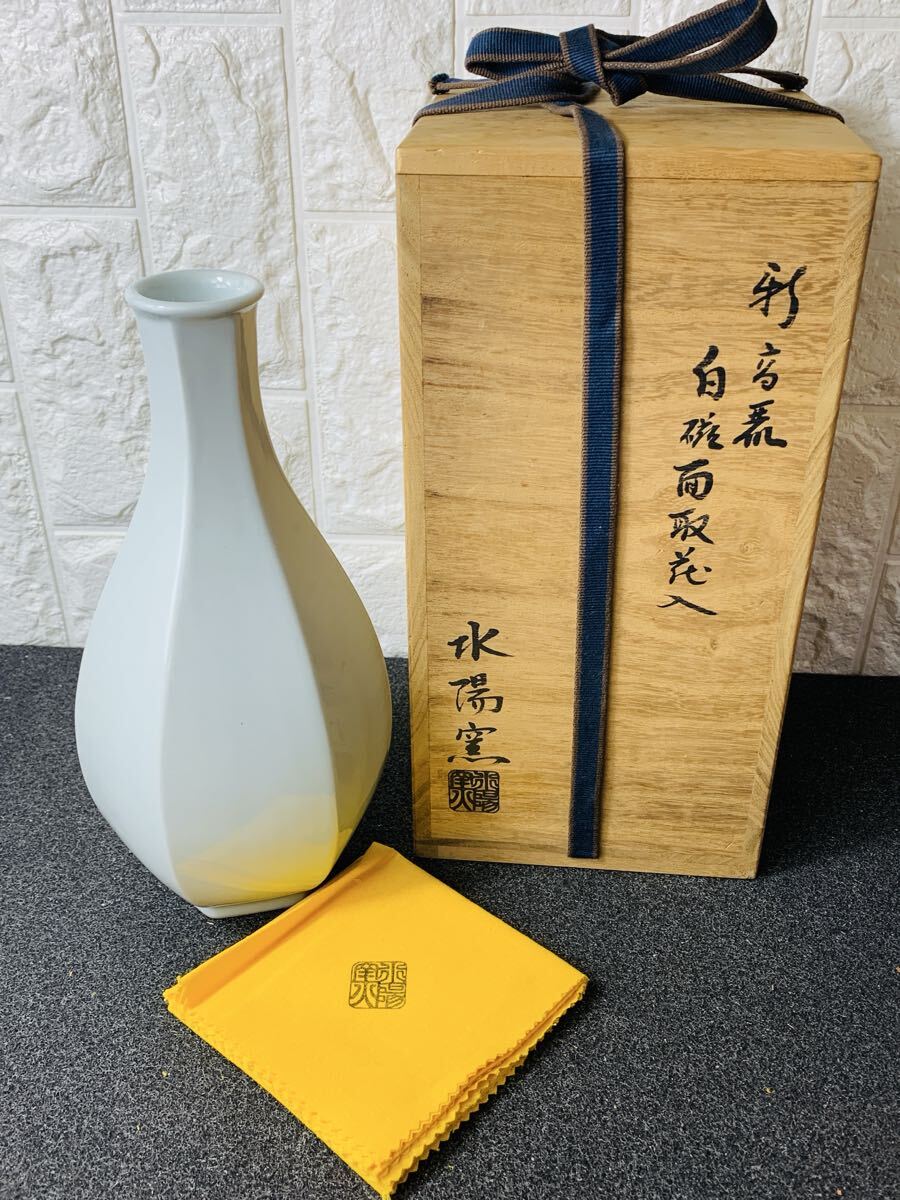 #20 美品 白磁面取花瓶 水陽窯 花入 花器 共箱 花瓶 蔵出し