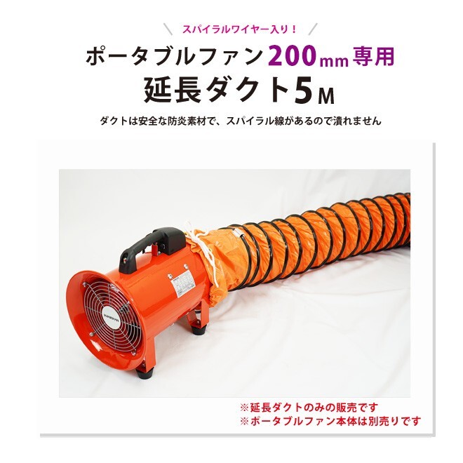 ●本商品はポータブルファン200mm用 延長ダクト のみ となります ●ダクトは折り曲げてもスパイラル線があるので潰れません ●ダクトは安全な防炎素材 ★ポータブルファン200mm本体はこちら |