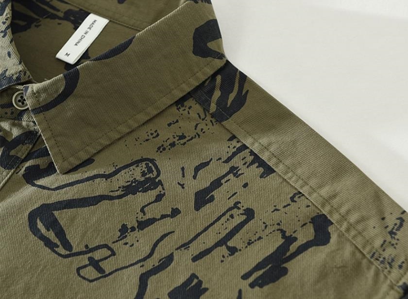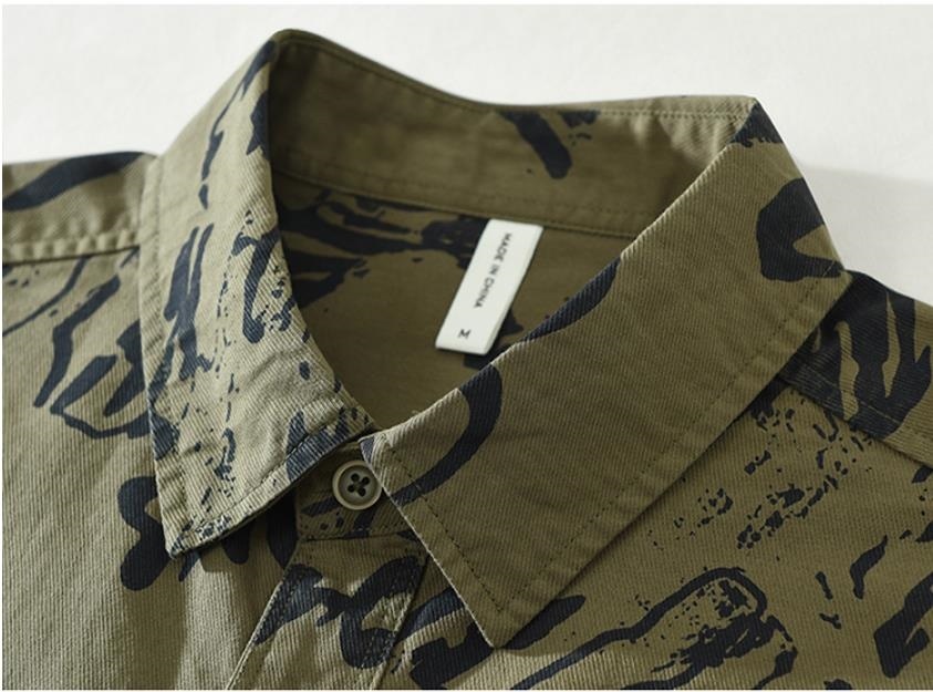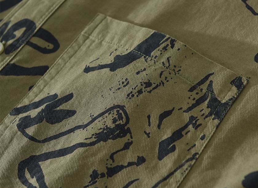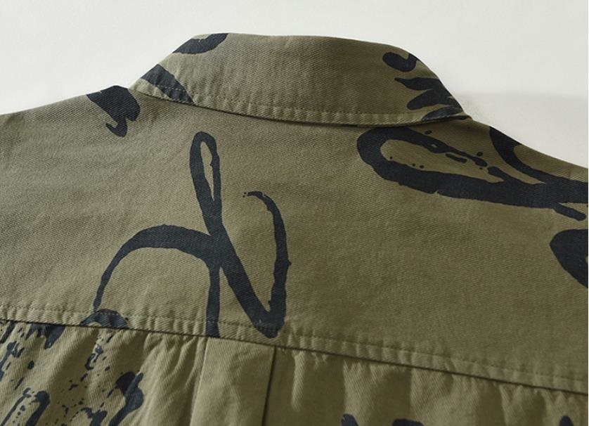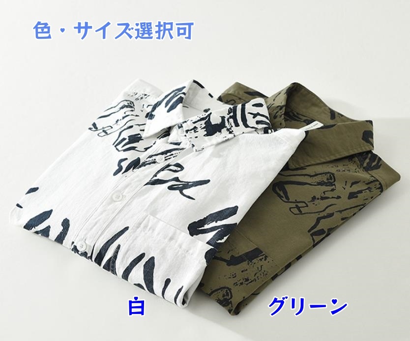 カジュアルシャツ シャツジャケット 長袖シャツ シャツ 新品★メンズ トップス  コットンシャツ 開襟シャツ【M6981】グリーン 3XL