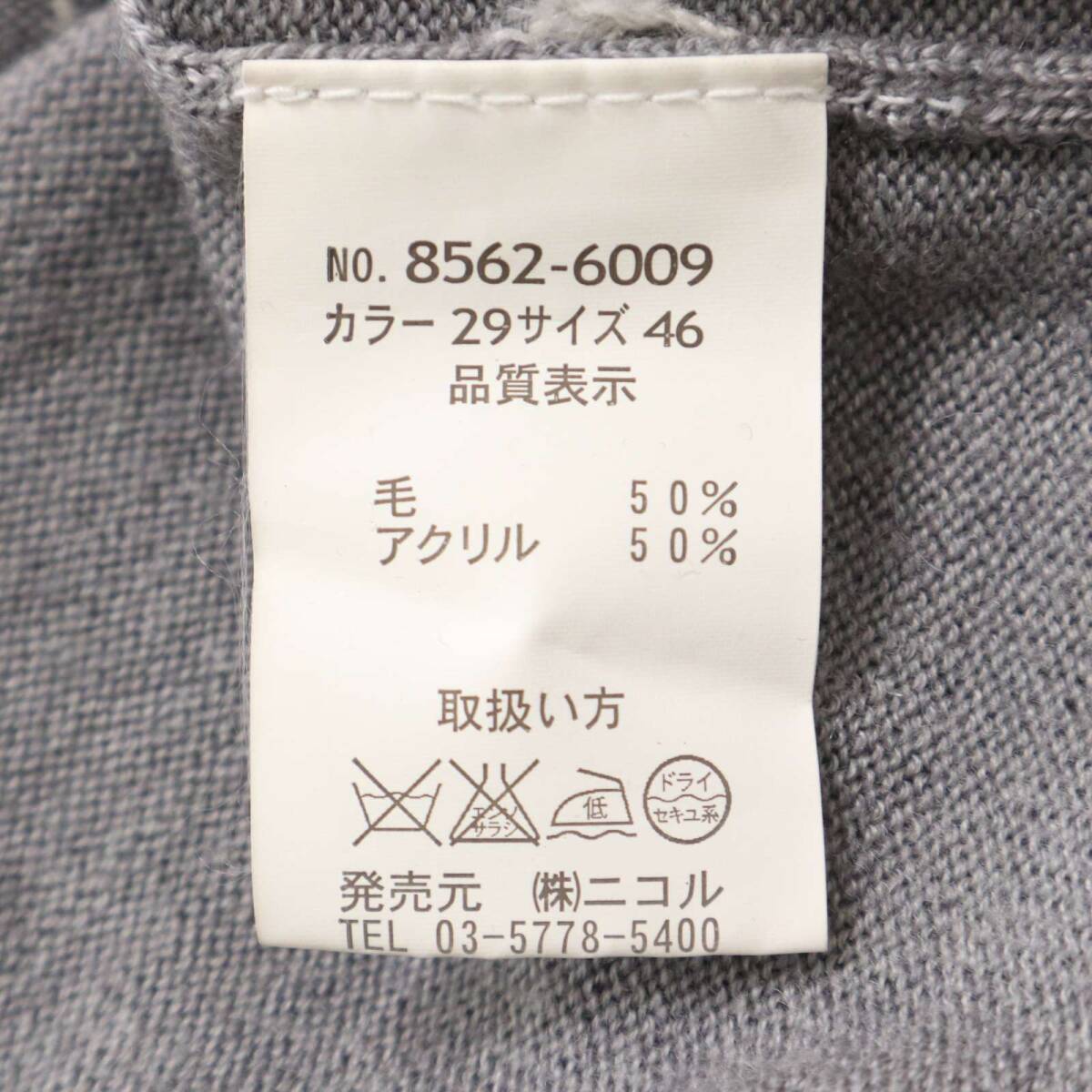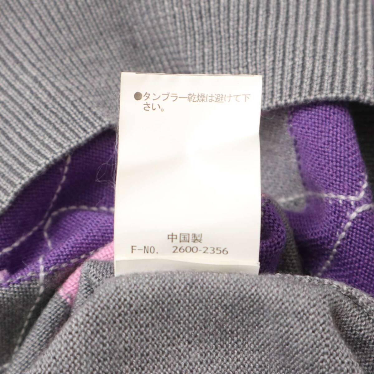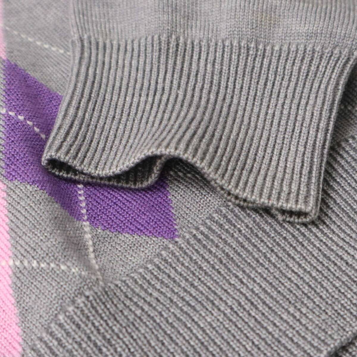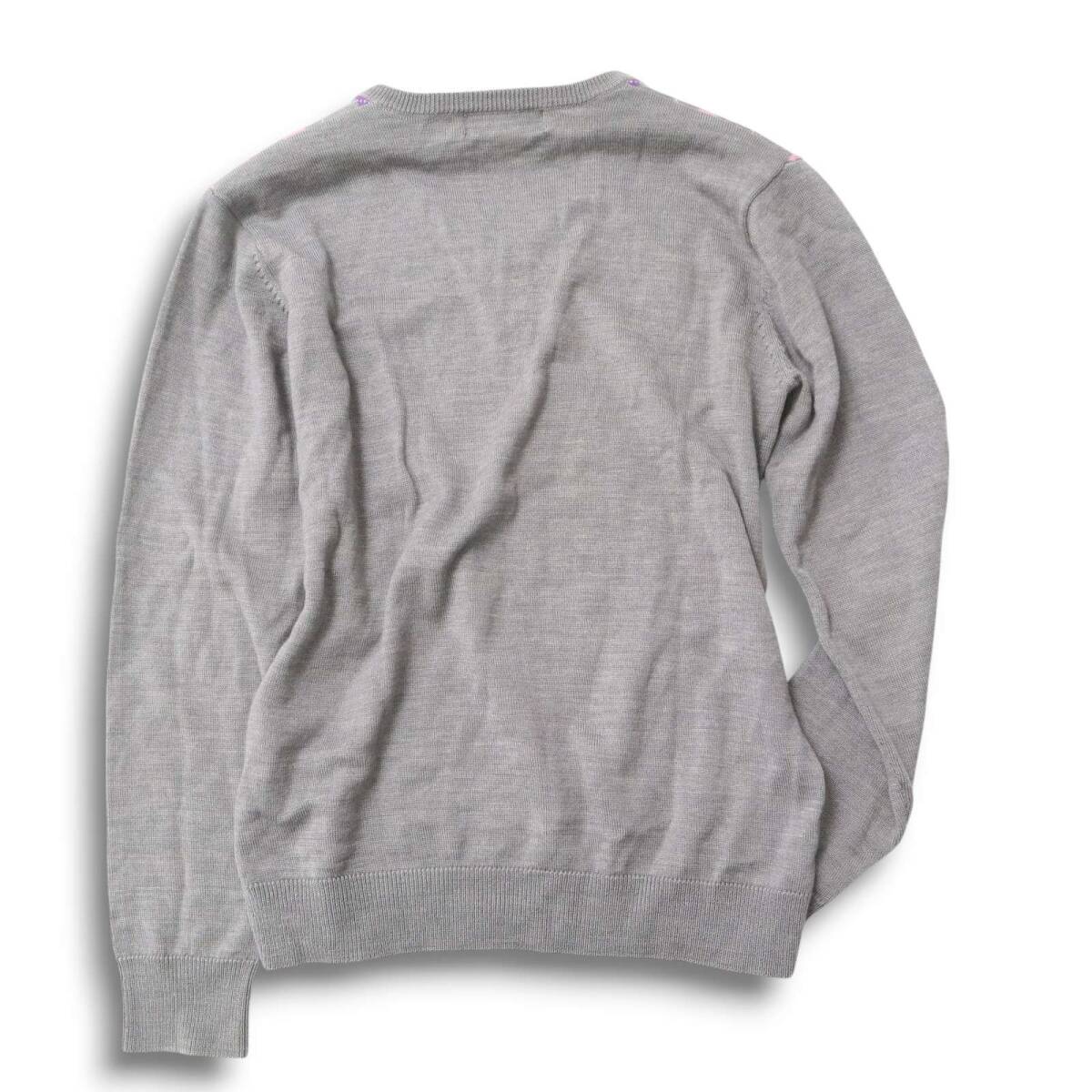 MONSIEUR NICOLE ムッシュ ニコル 秋冬 ウール★ アーガイル柄 Vネック ニット セーター Sz.46 メンズ 灰 グレー