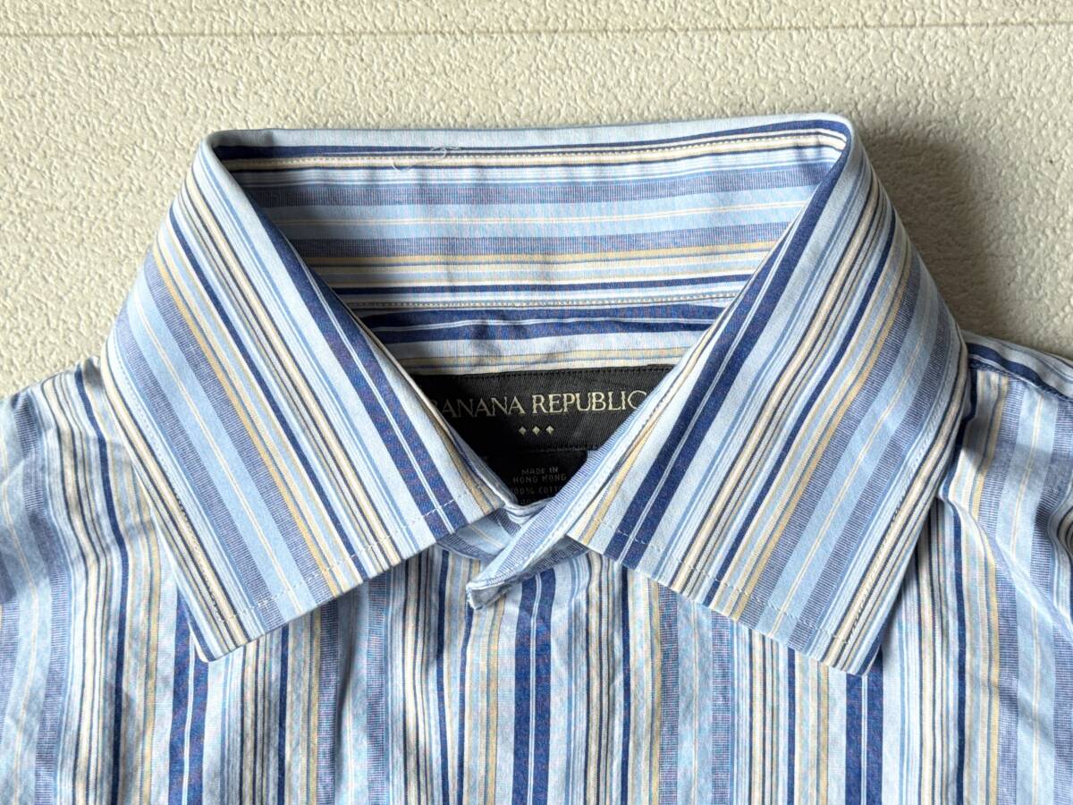 ☆送料無料☆ BANANA REPUBLIC バナナリパブリック USA直輸入 古着 長袖 ストライプ シャツ メンズ M ブルー系 トップス 中古 即決