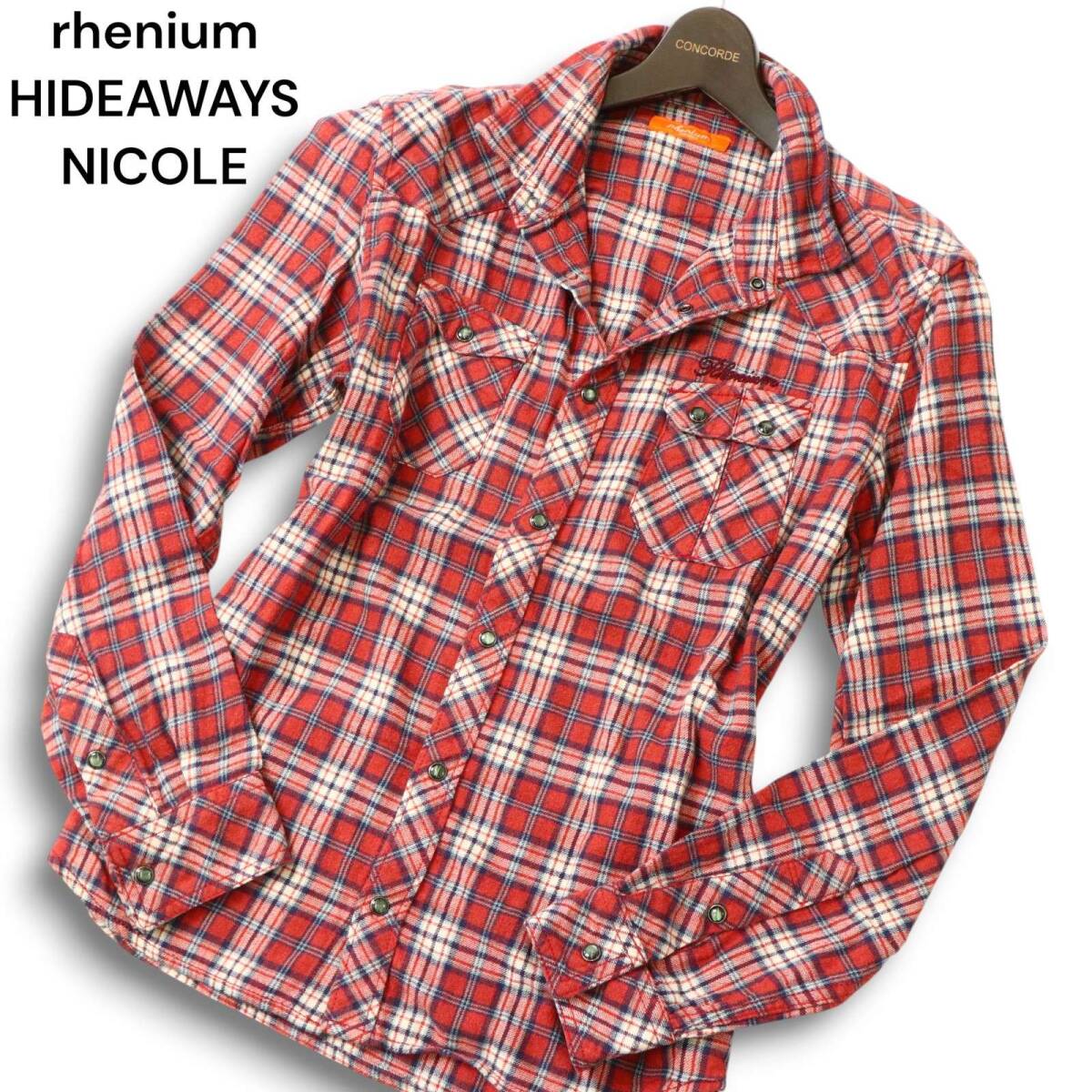 rhenium HIDEAWAYS NICOLE ハイダウェイ ニコル 秋冬 襟ワイヤー★ 長袖 チェック ウエスタン ネル シャツ Sz.48 メンズ