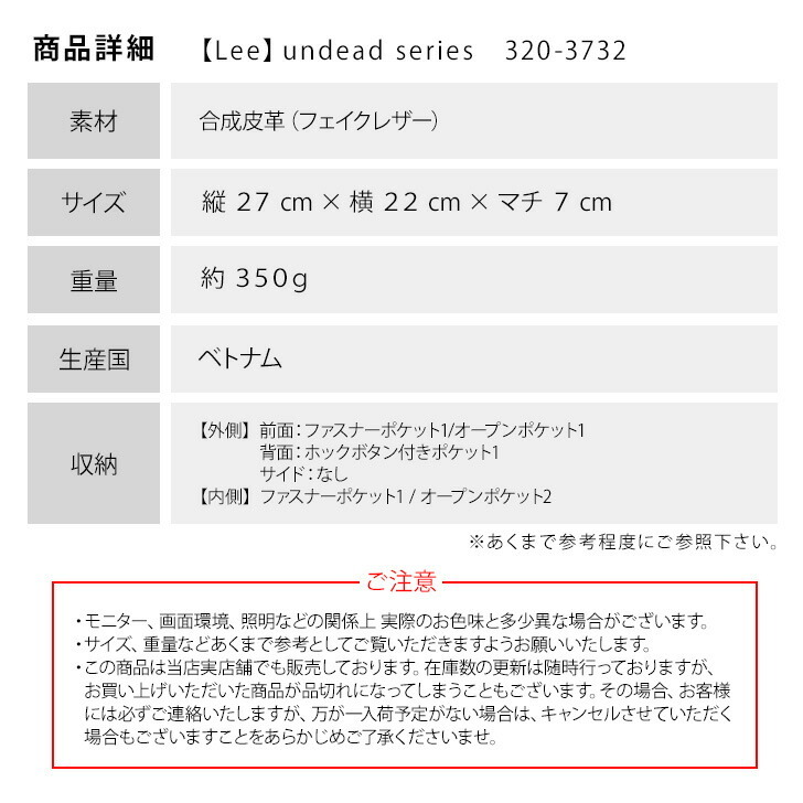 | 商品説明 | 大人気ブランド「Lee」の縦型ショルダーバッグが登場。 |
