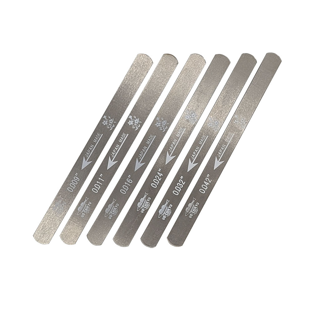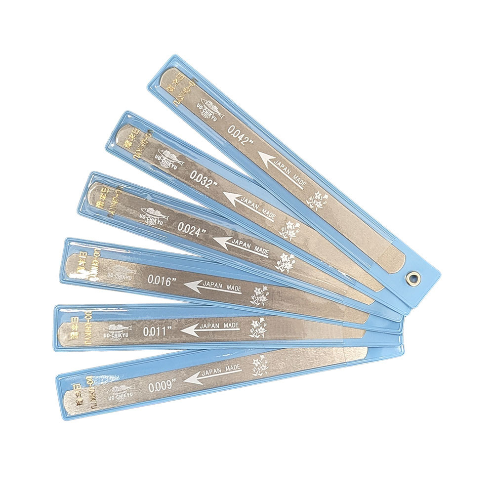 0.009インチ(0.23mm)、0.011インチ(0.28mm)、0.016インチ(0.41mm)、0.024インチ(0.61mm)、0.032インチ(0.81mm)、0.042インチ(1.07mm)