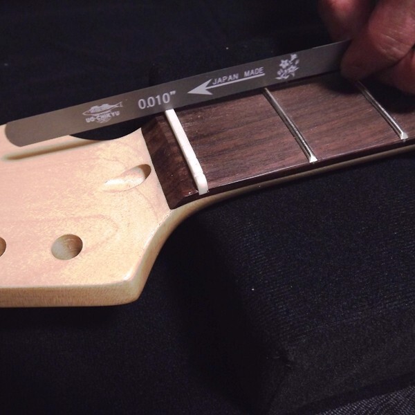 ヤスリの厚みを弦の太さに合わせてありますので、ジャストサイズの溝が削れます。