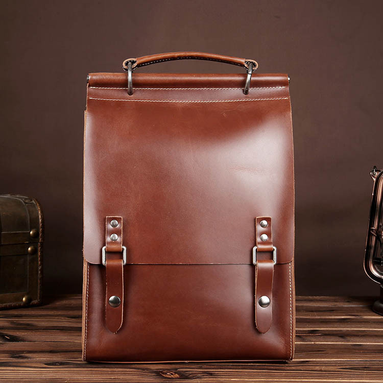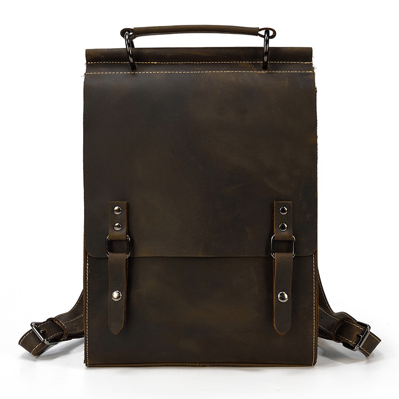 高級感あふれる本革を使用したロールトップタイプのバックパックです。ビンテージ風のデザインが特徴で、日常の通勤?通学はもちろん、旅行にも便利な多機能リュックです。落ち着いたブラウンカラーで、どんなコーディネートにも馴染み、スタイリッシュな印象を演出します。