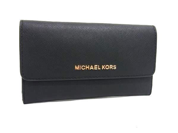 ■美品■ MICHAEL KORS マイケルコース レザー 三つ折り 長財布 ウォレット 札入れ 小銭入れ レディース ブラック系 DG9414