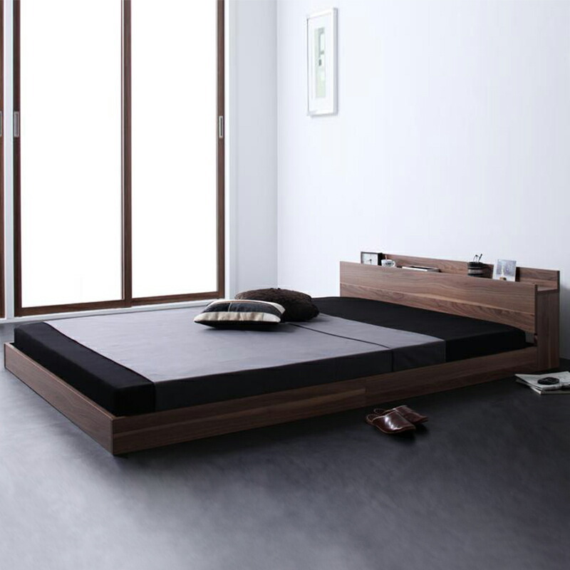棚・コンセント付きフロアベッド スタンダードボンネルコイルマットレス付き ダブル