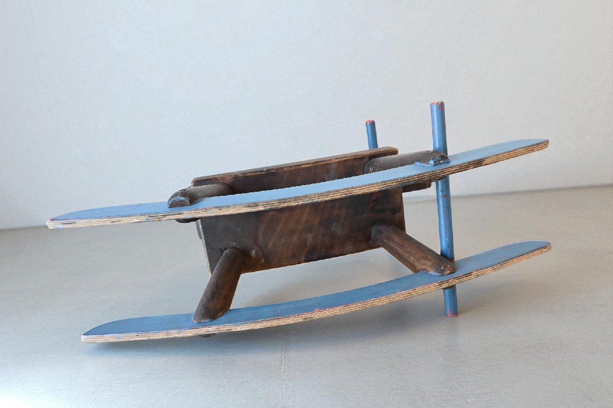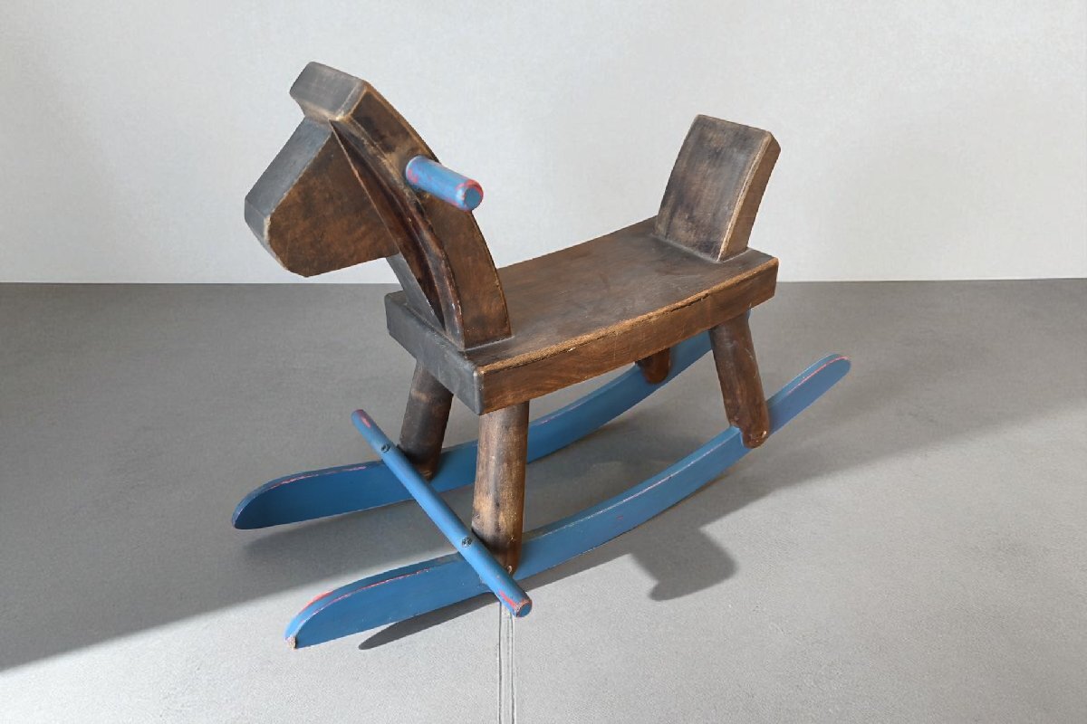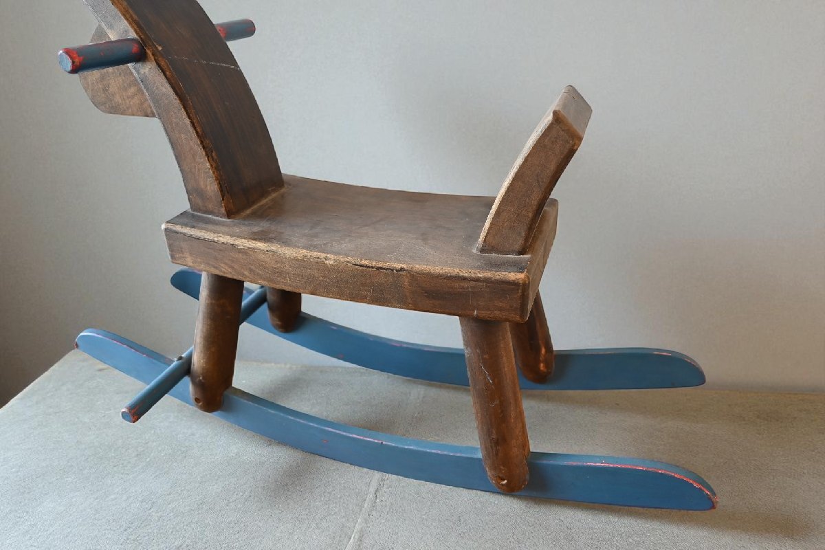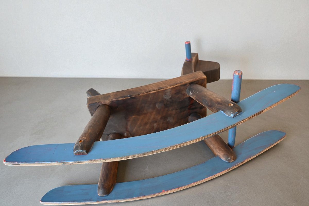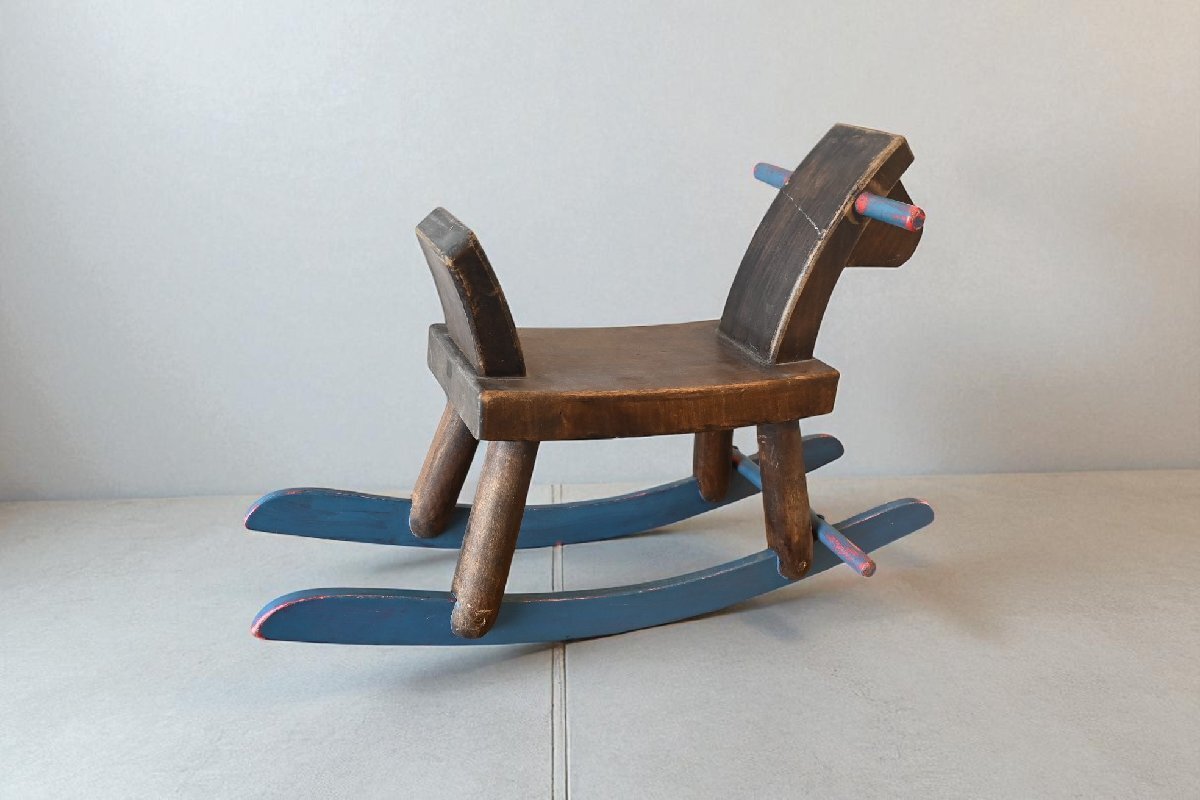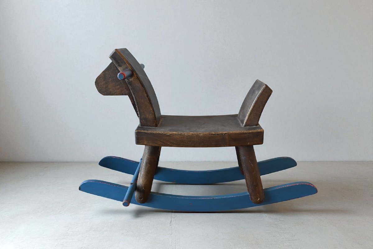 title:可愛い木馬 木製のロッキンホース 青ペイント 素朴な風合い レトロ シャビー ヴィンテージ 古道具のgplus広島 2509i
