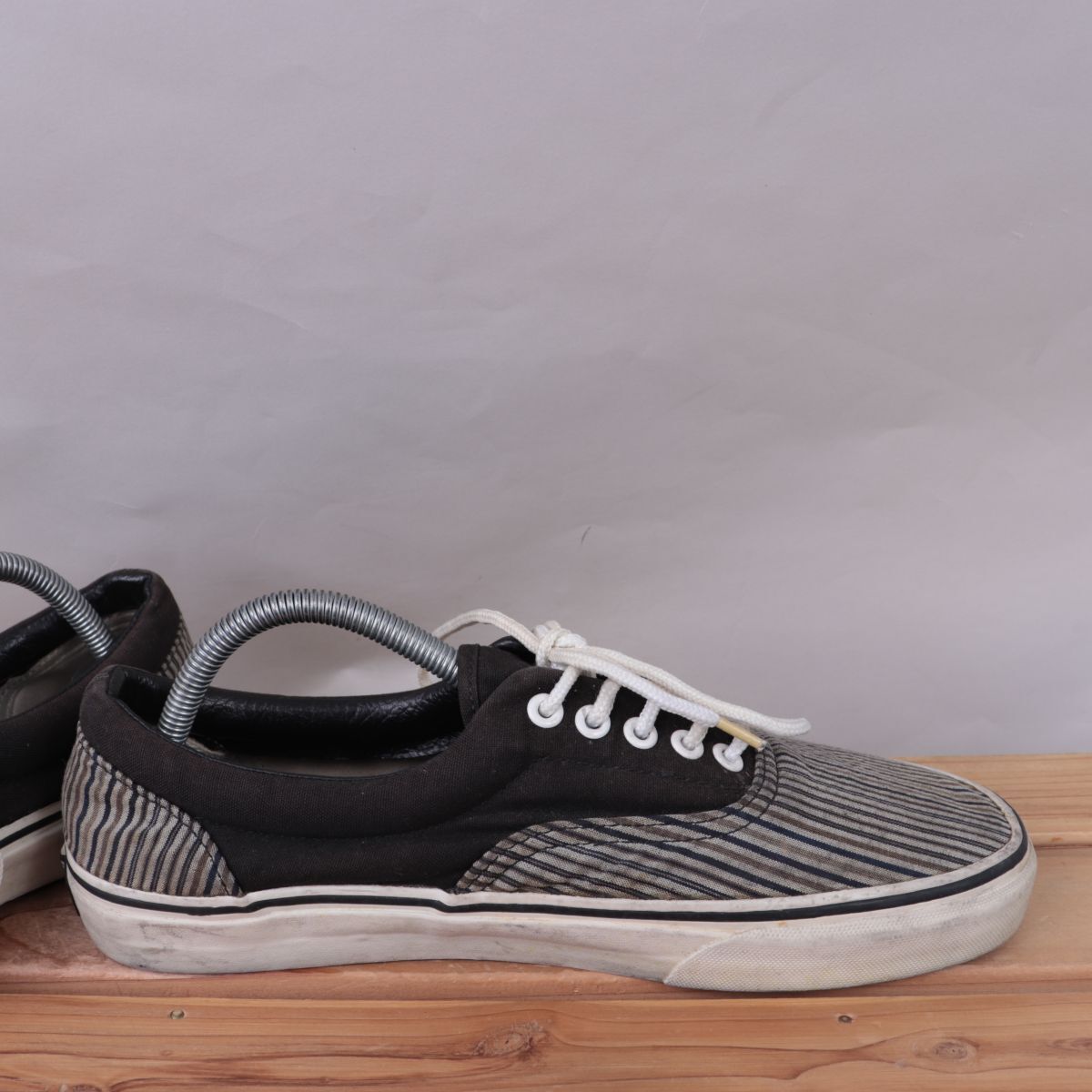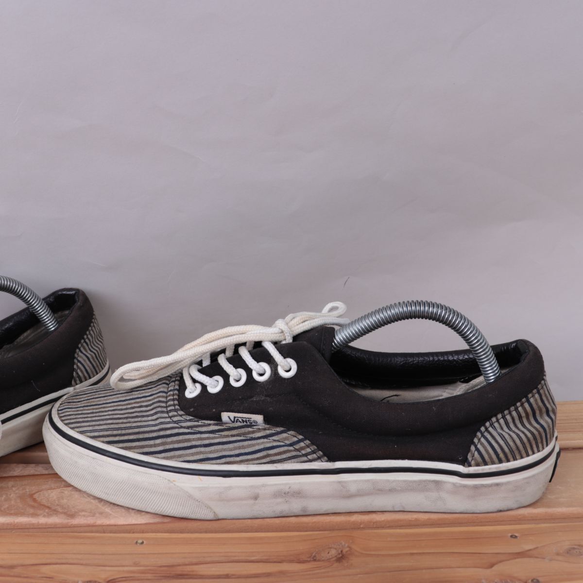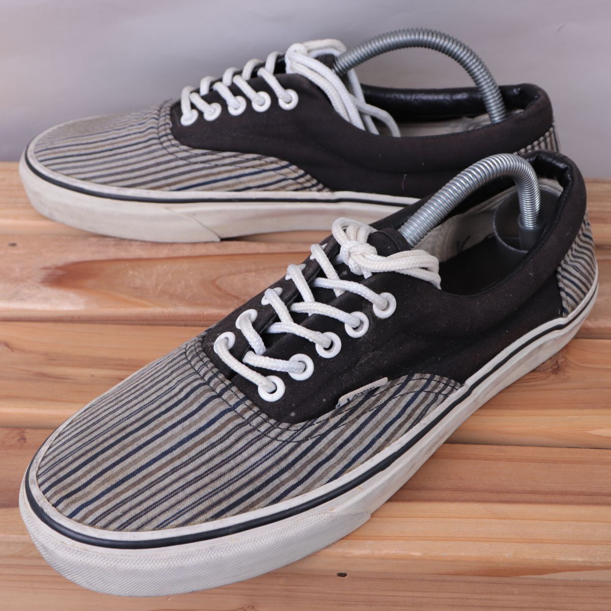 z1685 バンズ エラ US9.5 27.5cm位/こげ茶 ストライプ柄 VANS ERA メンズ スニーカー 中古
