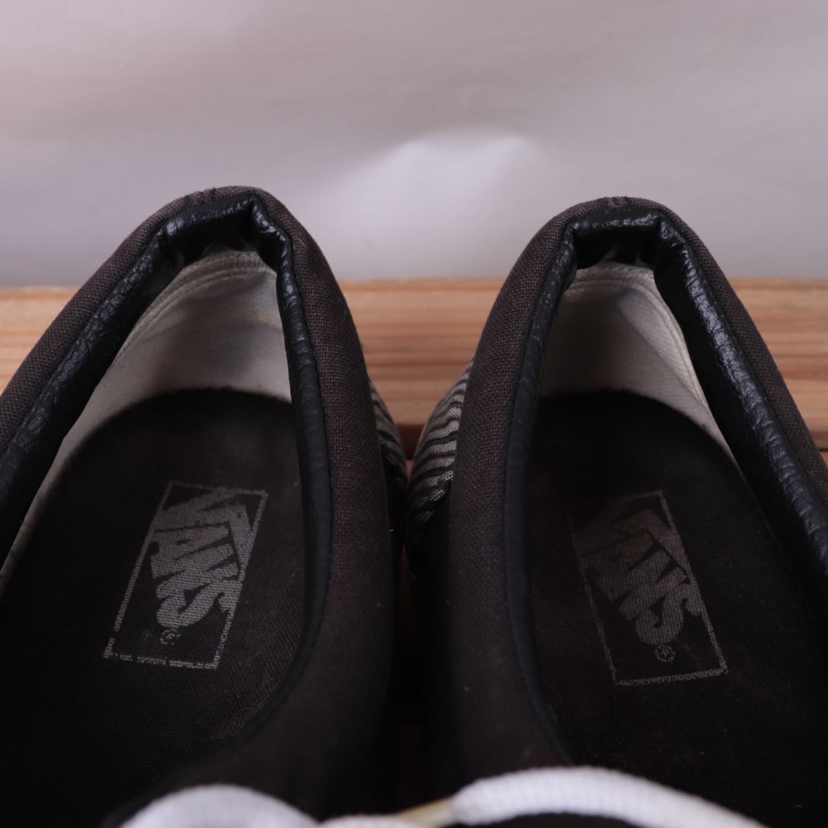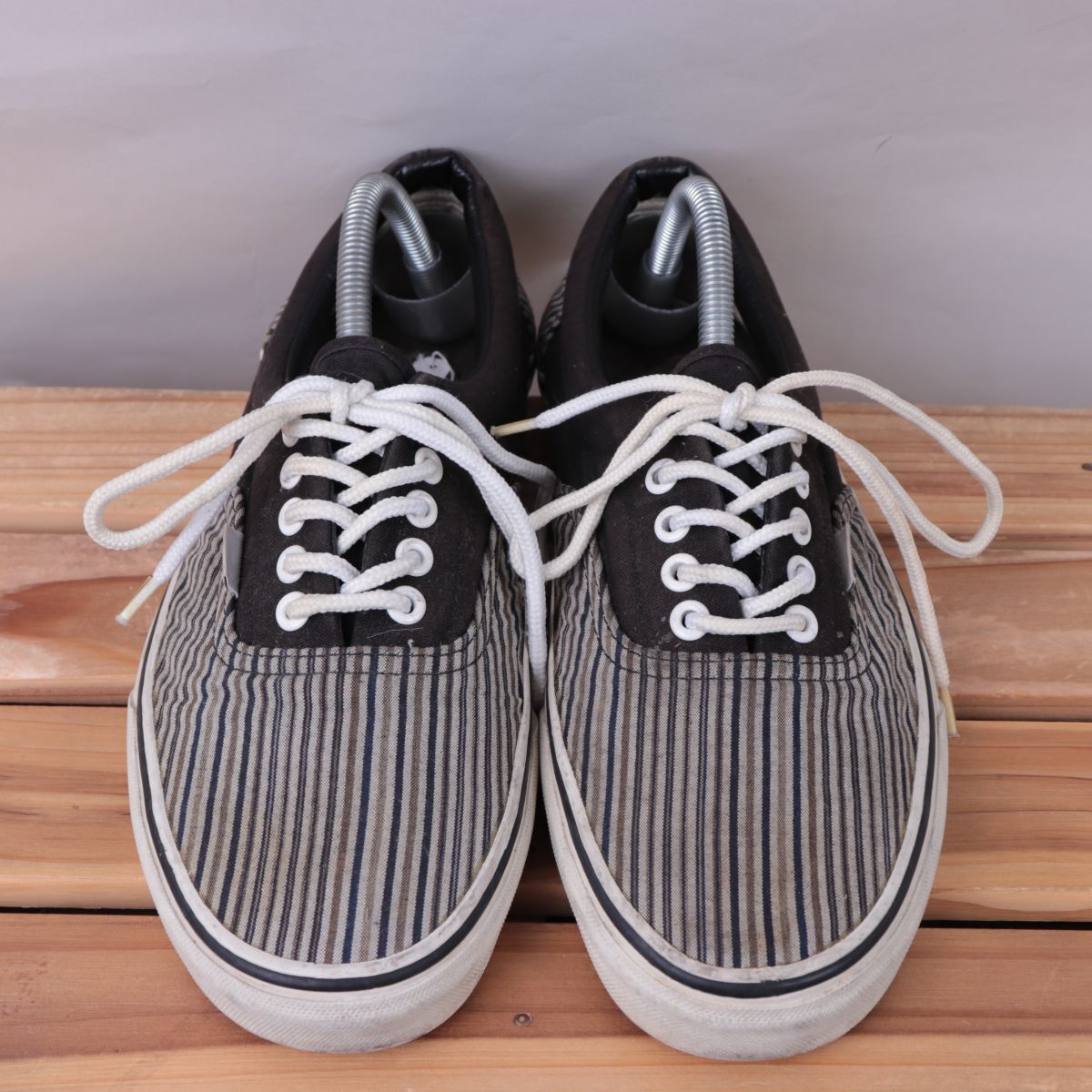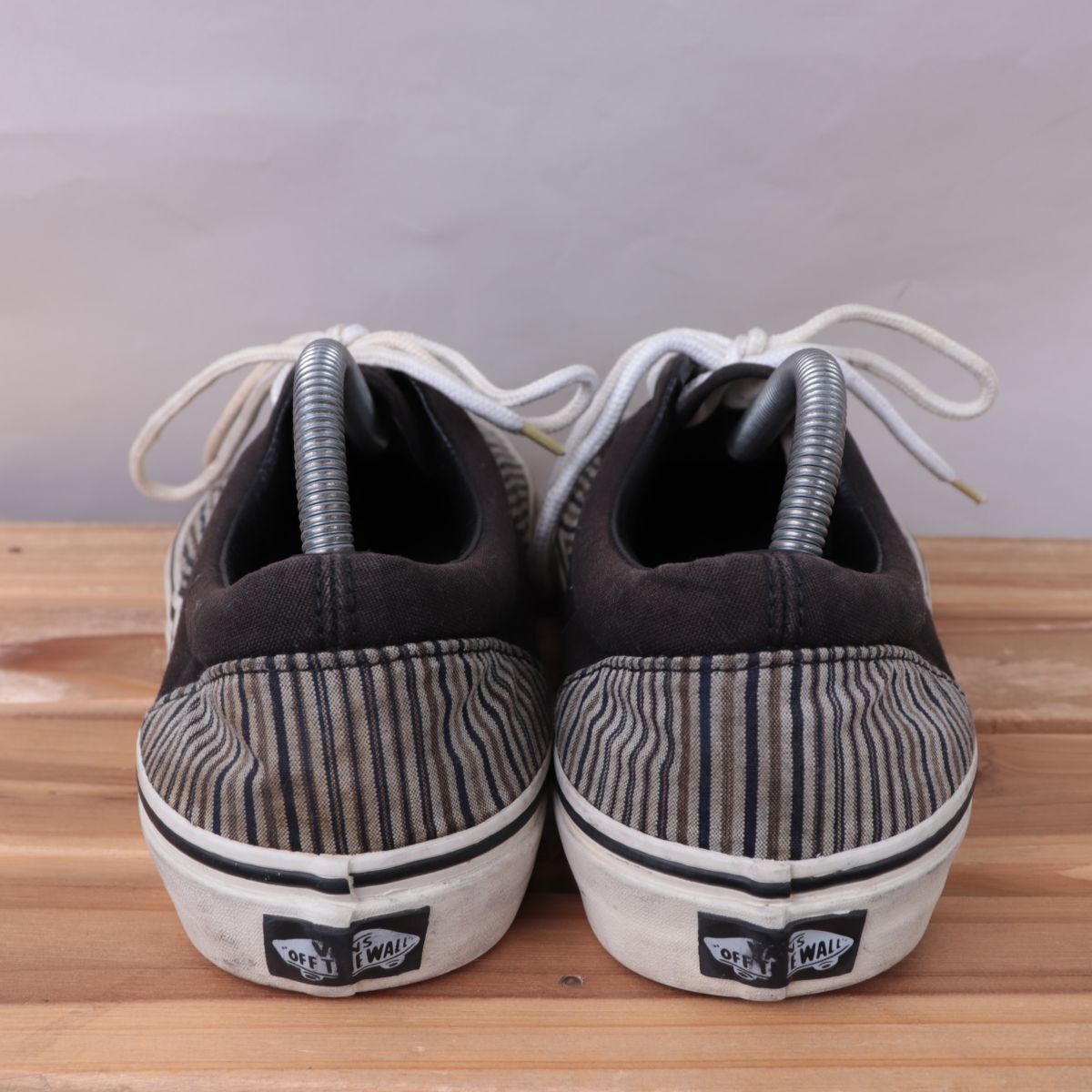 z1685 バンズ エラ US9.5 27.5cm位/こげ茶 ストライプ柄 VANS ERA メンズ スニーカー 中古