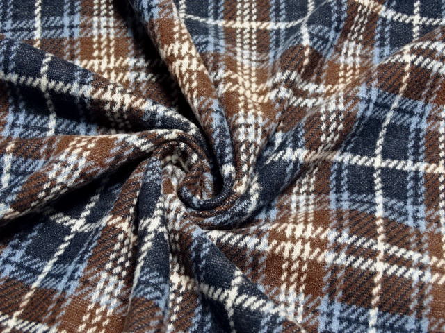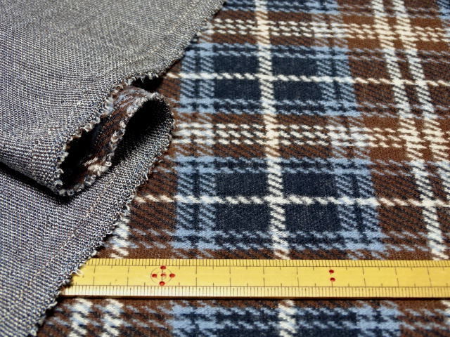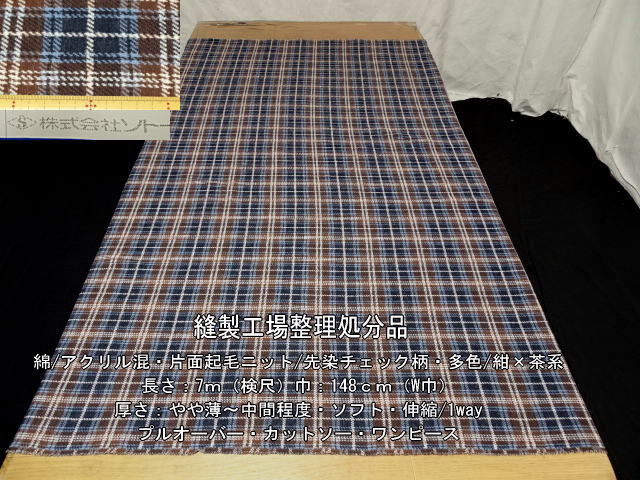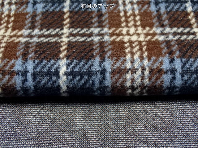 | 綿/アクリル混 片面起毛ニット 先染チェック 多色/紺×茶系 7m | |