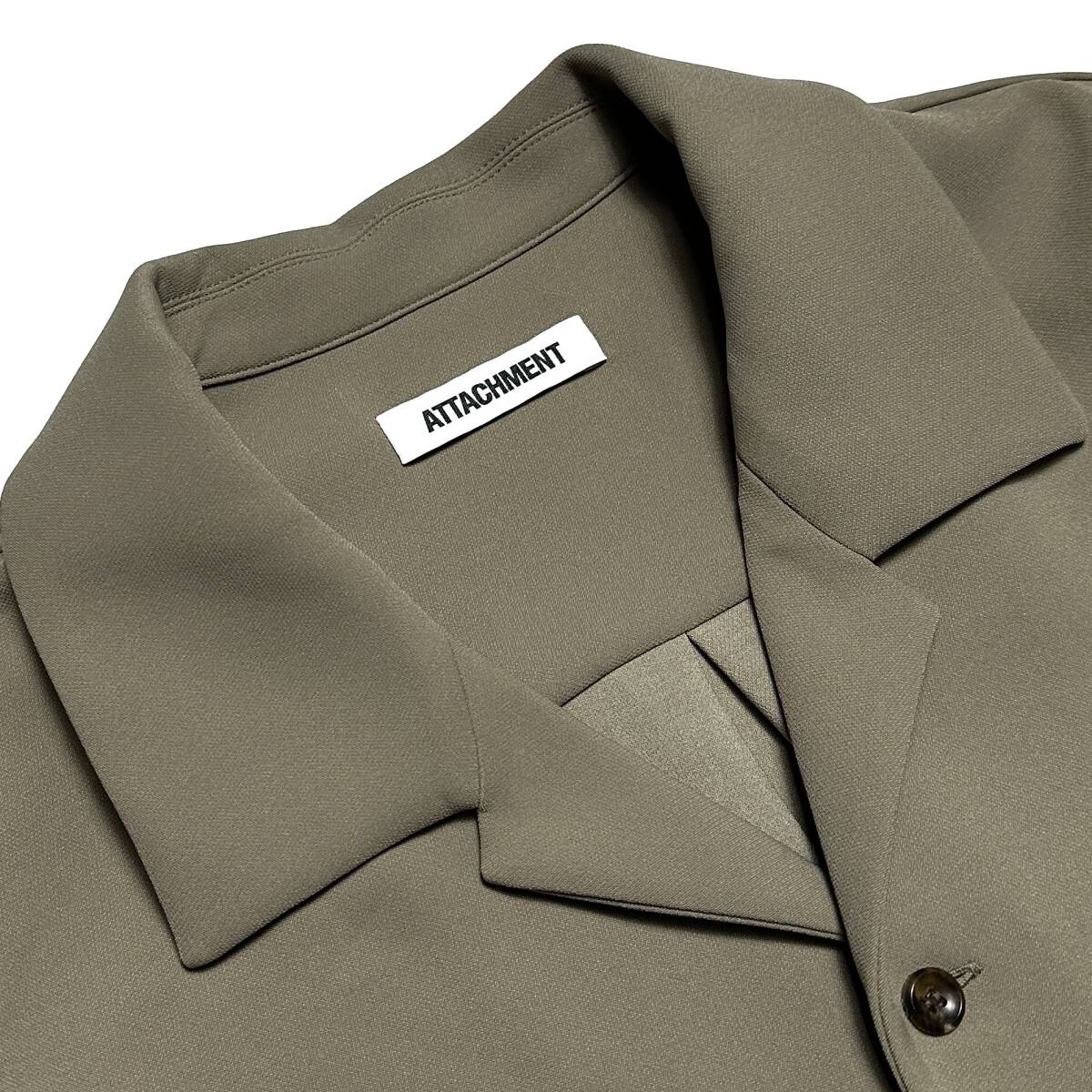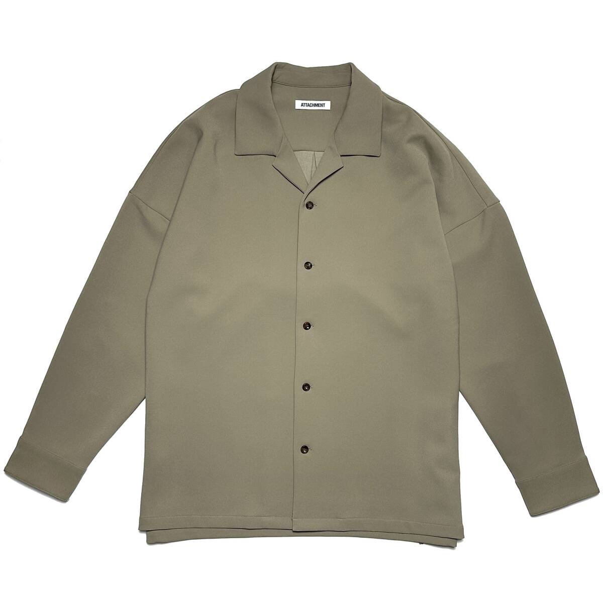 定価3万 ATTACHMENT PE STRETCH DOUBLE CLOTH OPEN COLLAR L/S SHIRT 2 カーキ シャツ カットソー ロングTシャツ アタッチメント ニット