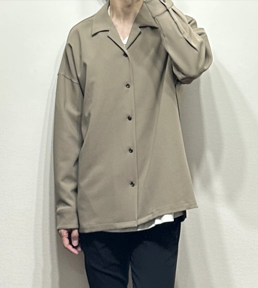ATTACHMENT PE STRETCH DOUBLE CLOTH OPEN COLLAR L/S SHIRT