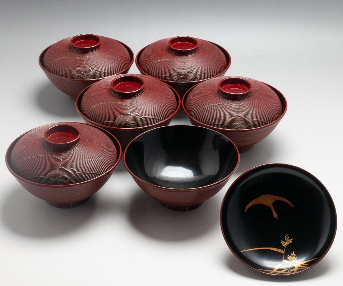 * 橘 * 「吸物椀」 芦雁 蒔絵 6客 茶道具 懐石道具 会席道具