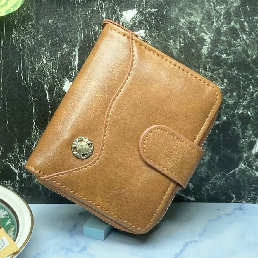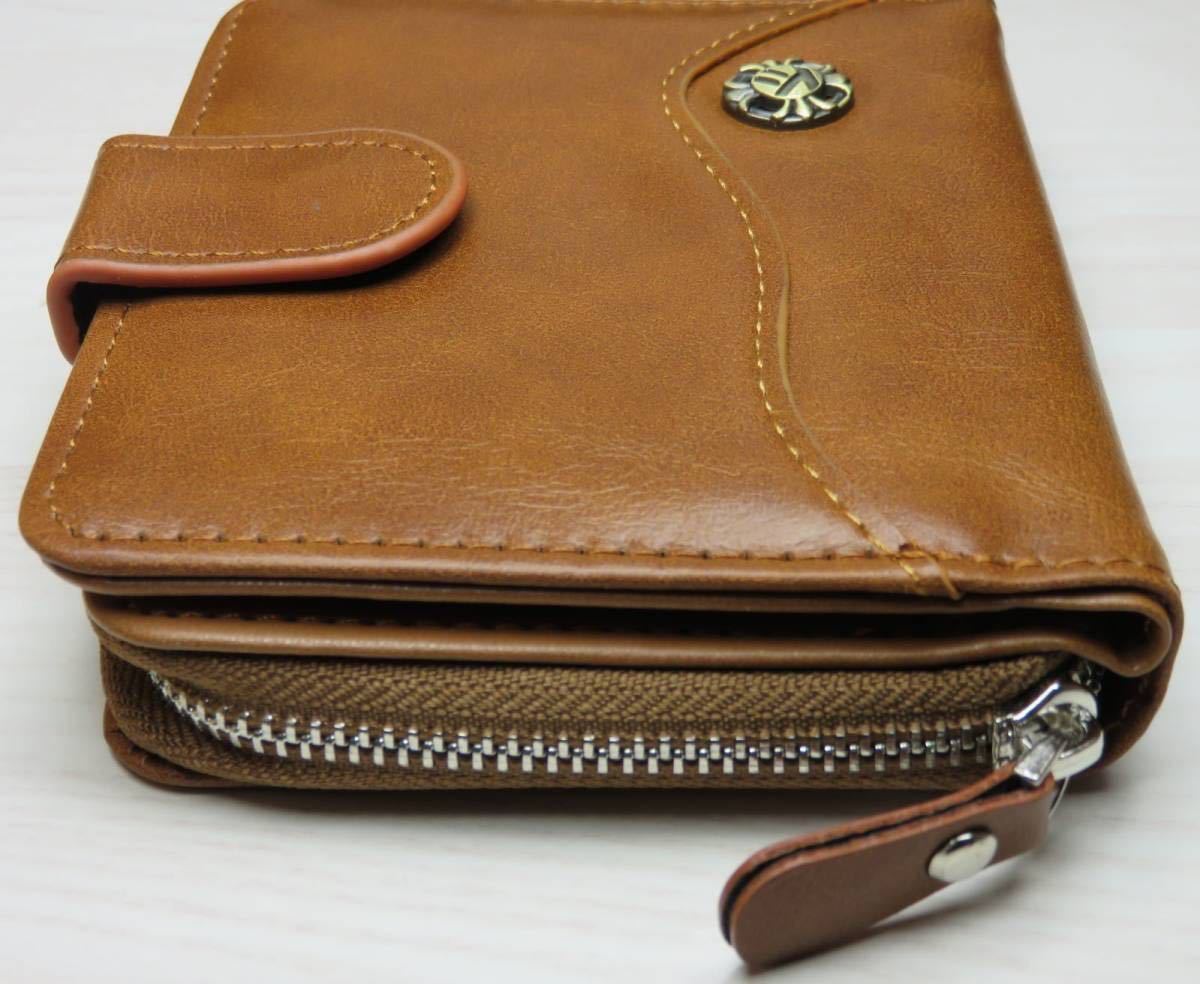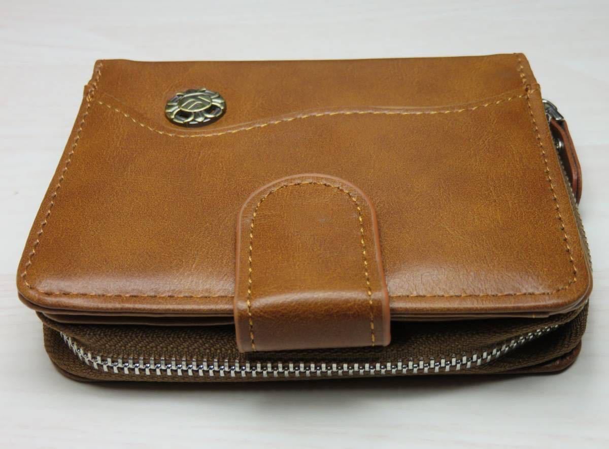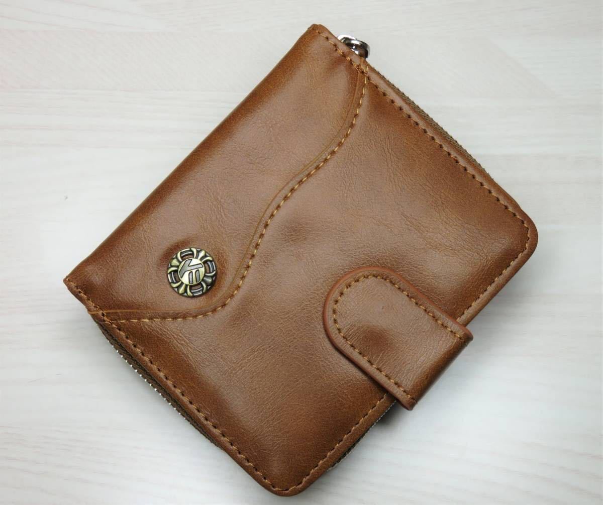 二つ折り財布 レザー メンズ 財布 レザー財布 コンパクト 軽量*新品*当日発送(薄いブラウン)