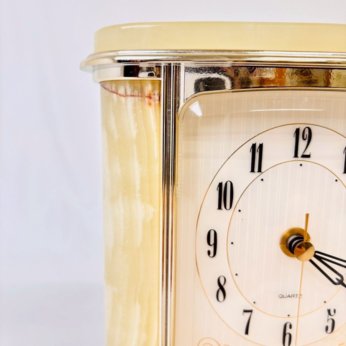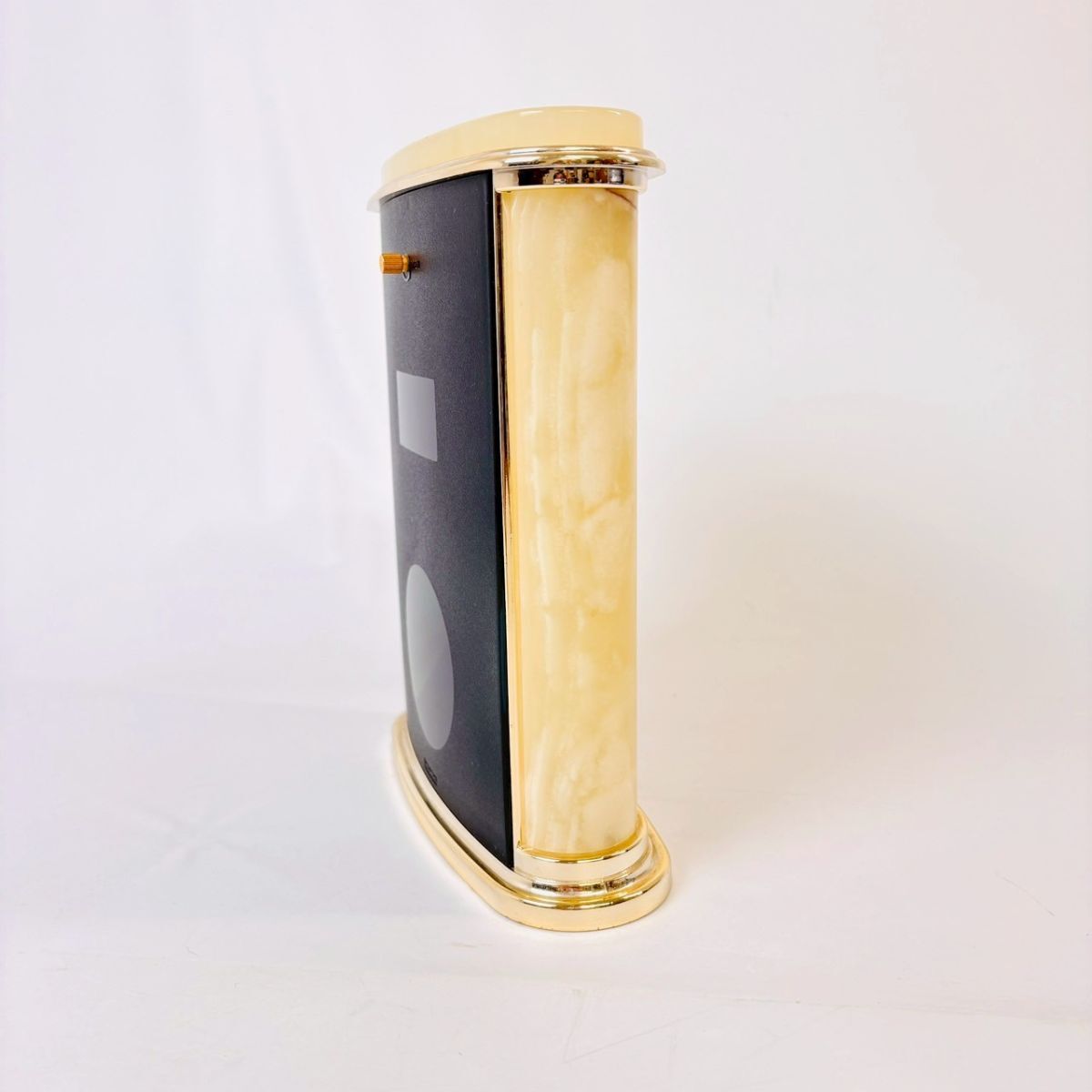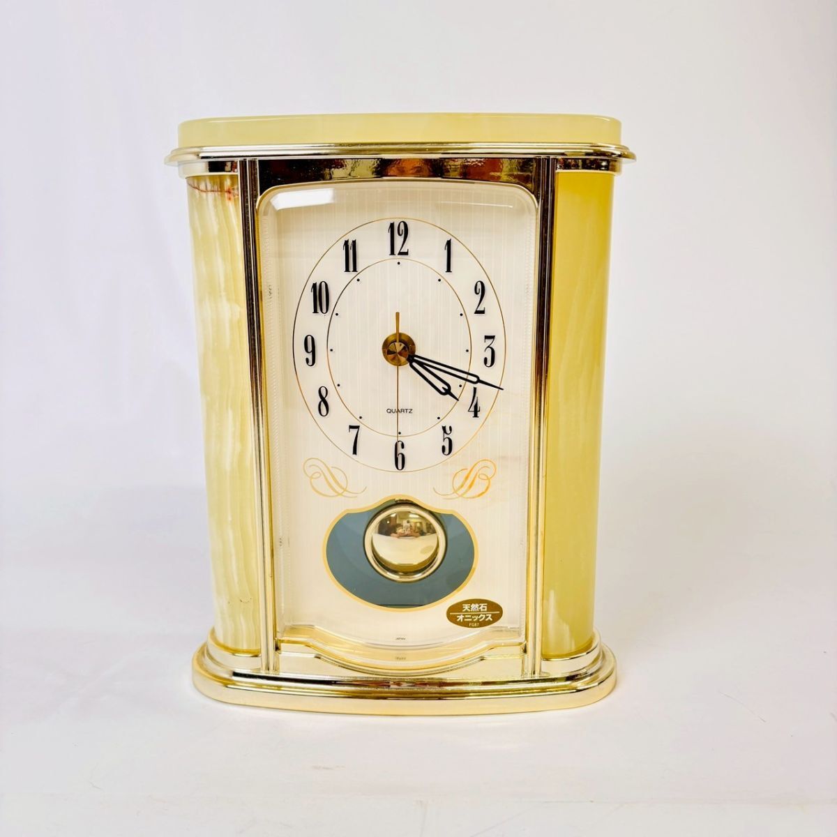R828-4 1円〜 【天然石 オニックス】置き時計 QUARTZ 稼働品 リズム時計工業 MITSUKOSHI アンティーク レトロ 昭和 中古 現状品 ワンスタ
