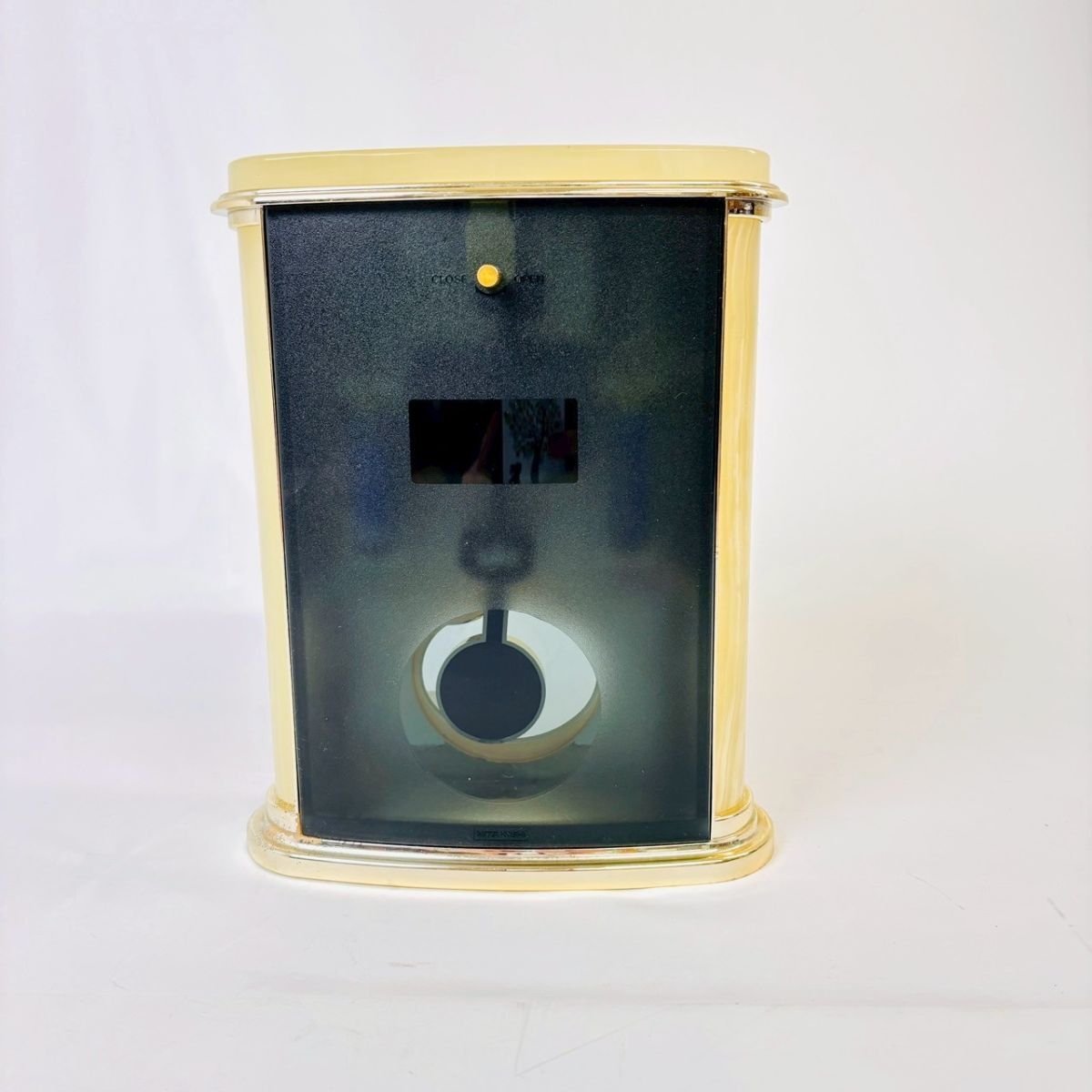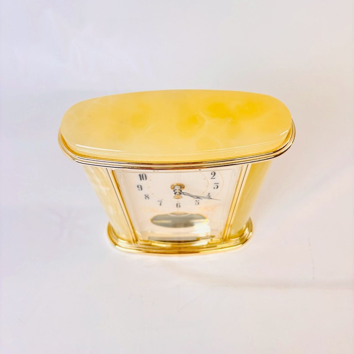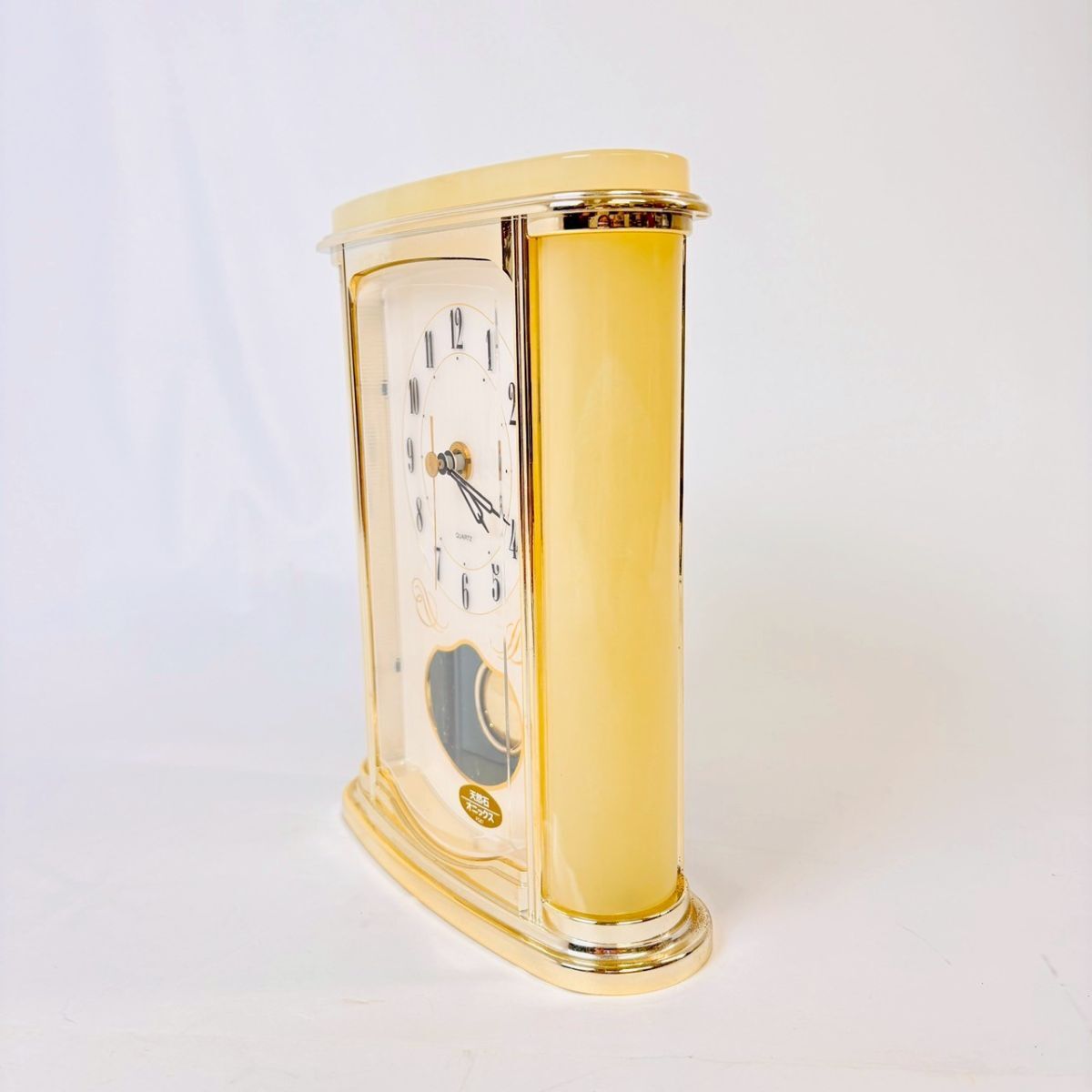 R828-4 1円〜 【天然石 オニックス】置き時計 QUARTZ 稼働品 リズム時計工業 MITSUKOSHI アンティーク レトロ 昭和 中古 現状品 ワンスタ