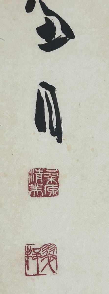 力強くも品格のある筆致でまとめられた一幅です。 ◆作品情報 ・作家:桑原翠邦 ・作品名:浄心 ・書サイズ:約67cm × 34cm ・額縁サイズ:約93cm × 45cm(外寸) ・形式:額装済み(壁掛け可能) ・保障書類はなく鑑定もしておりませんのでヤフオクのルール上、複写品として出品いたします。 ◆状態 ・経年による汚れ、日焼け、変色などが見られます ・額やマットにも細かなスレやヨゴレあり ・大きな破損はありませんが、あくまで中古・古作品としてご理解ください ・状態は写真にてよくご確認ください 力強さと静けさが共存する一枚です。 ご興味のある方は、この機会にぜひご検討ください。 中古品または現状品のため出品内容(注意事項含む)をご理解いただける方以外は入札をお控え下さい。 発送までに1日~5日程度いただく場合がございますのでお急ぎの場合は事前にご相談ください。 ノークレーム、ノーリターンでお願い致します。 | ||