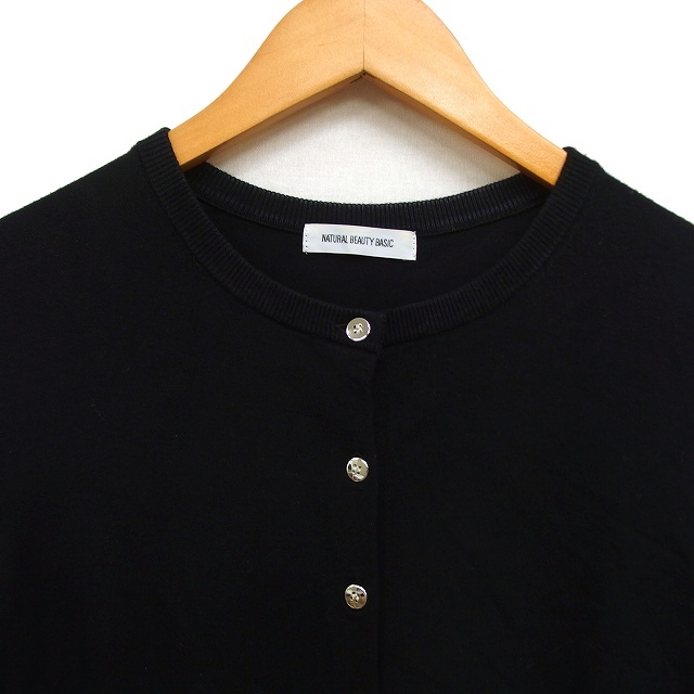 ナチュラルビューティーベーシック NATURAL BEAUTY BASIC クルーネック カーディガン ニット ハイゲージ リブ クロップド 長袖