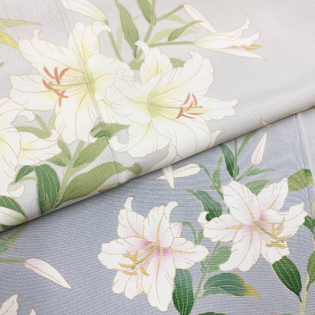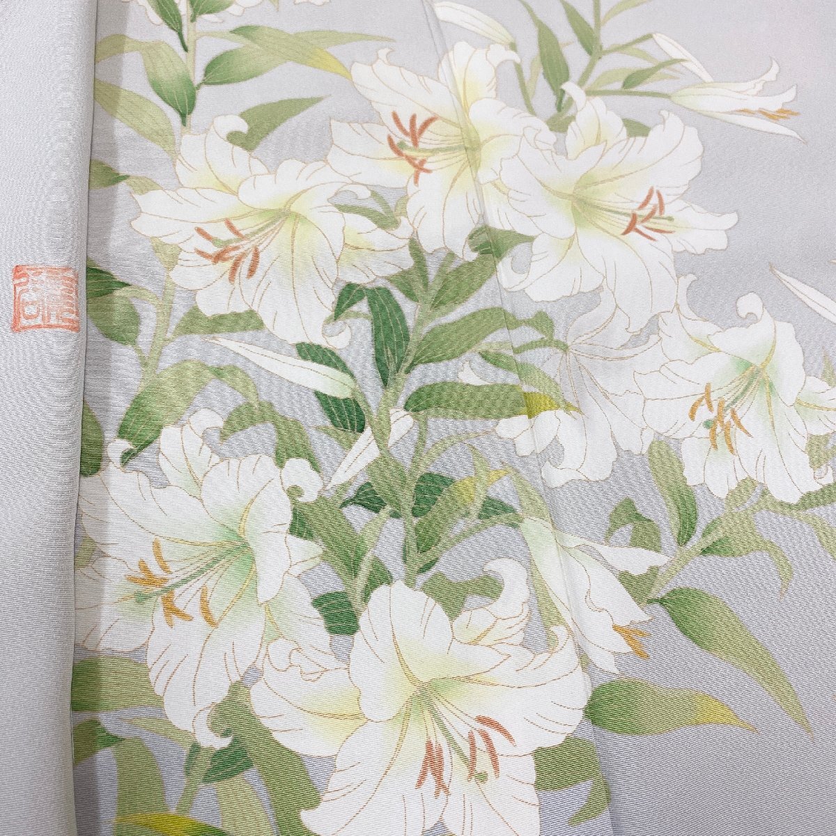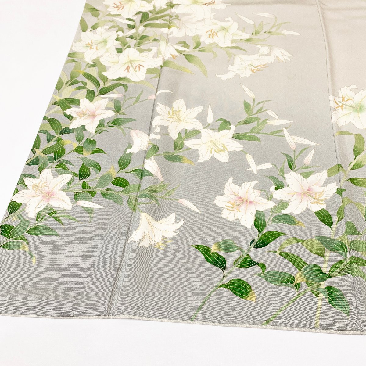 着物月花 十日町友禅 秀美 手描き友禅 ぼかし染 百合 訪問着 未使用品 正絹 共八掛 さが美 ガード加工 tki579