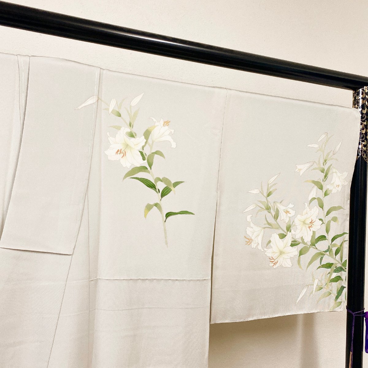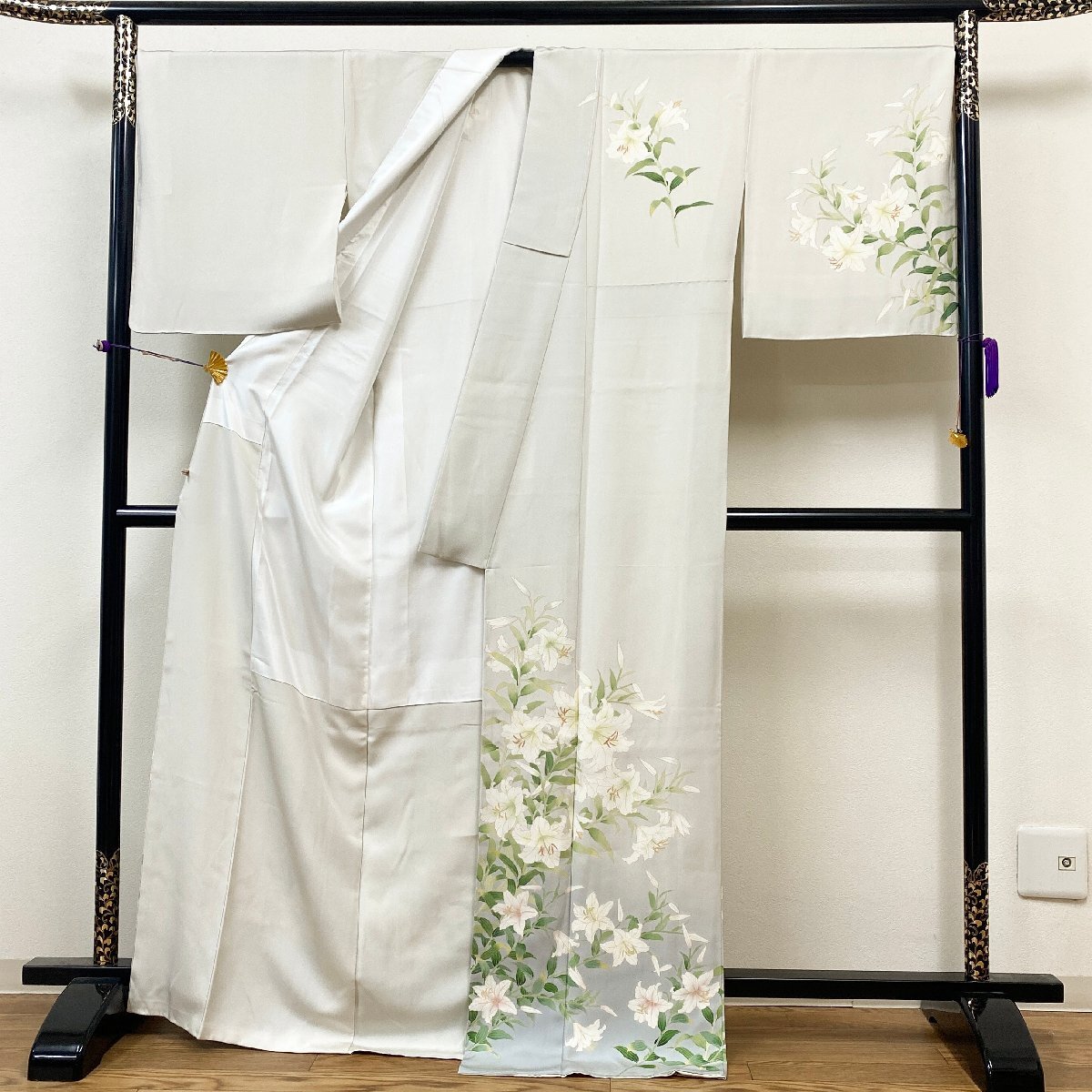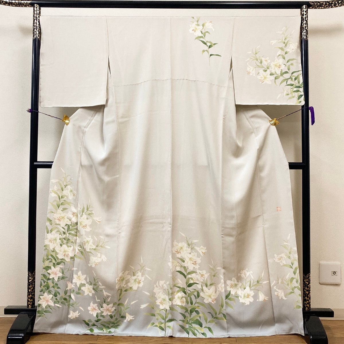 着物月花 十日町友禅 秀美 手描き友禅 ぼかし染 百合 訪問着 未使用品 正絹 共八掛 さが美 ガード加工 tki579