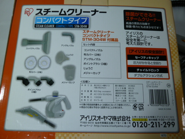 【動作確認済】 アイリス オーヤマ スチーム クリーナー コンパクト タイプ STM-304W 掃除 掃除用品 キッチン 換気扇 風呂 サッシ トイレ