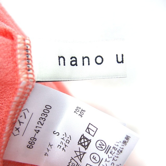 ナノユニバース nano universe シアー ステッチ カットソー ボートネック コットン混 長袖 S ピンク /NT8 レディース