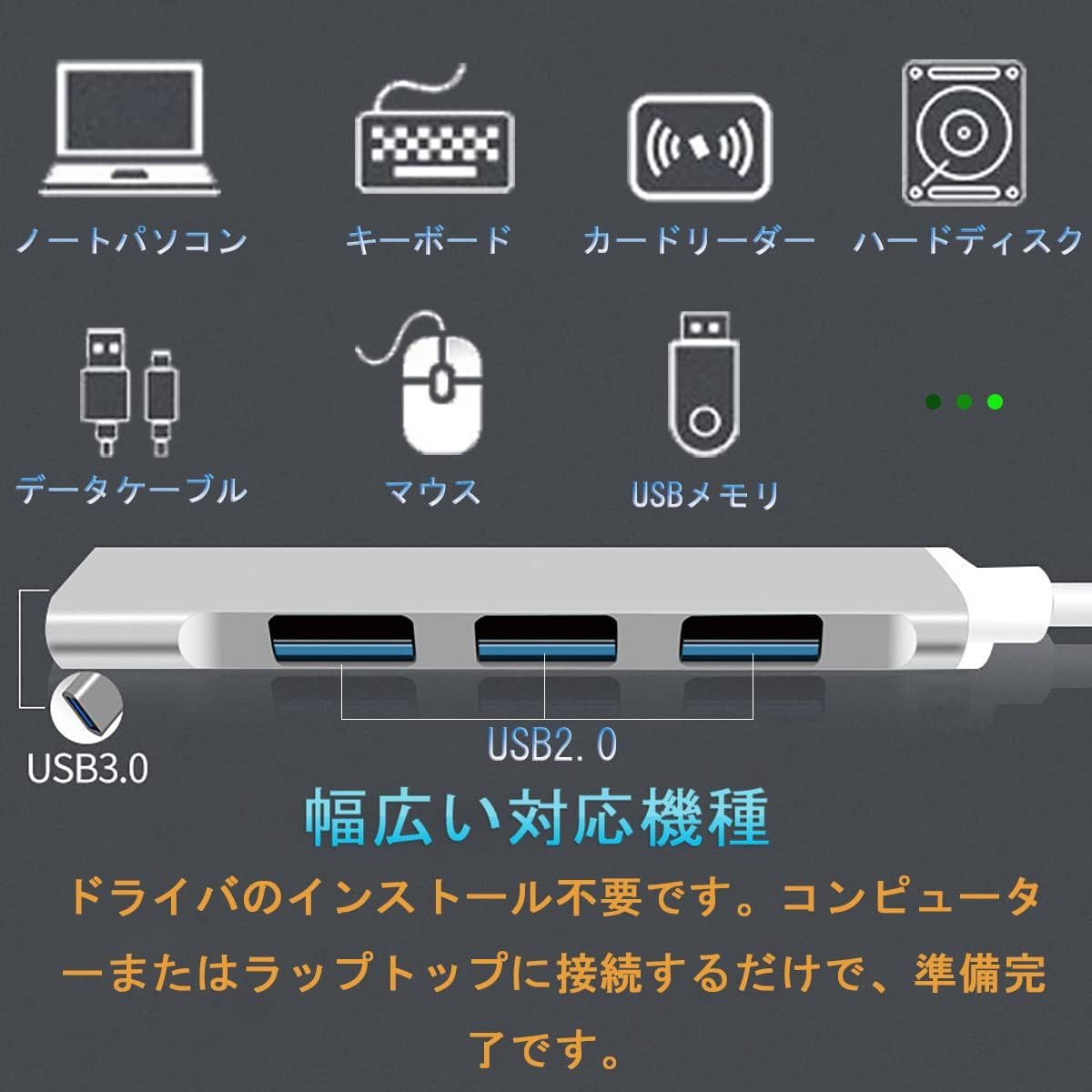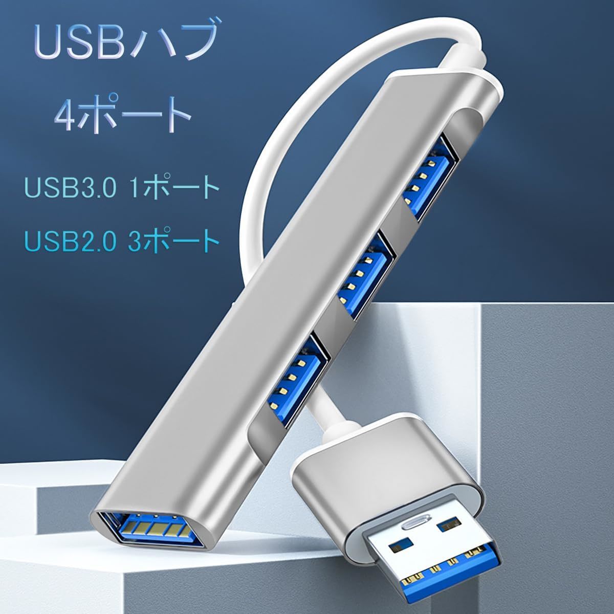 USBハブ USB3.0/2.0 ウルトラスリム 4ポートハブ USB ハブ hub 軽量 コンパクト テレワーク リモート (グレー)
