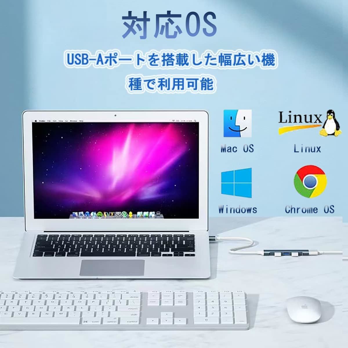 【ポート拡張】USBハブ 4ポートは、単一のUSB ポートを拡張し、最大四つのUSB-Aポートを接続でき、さまざまなUSB3.0または2.0アクセサリと周辺機器で使われます。4つのUSB-Aポートは同時に動作できます。
