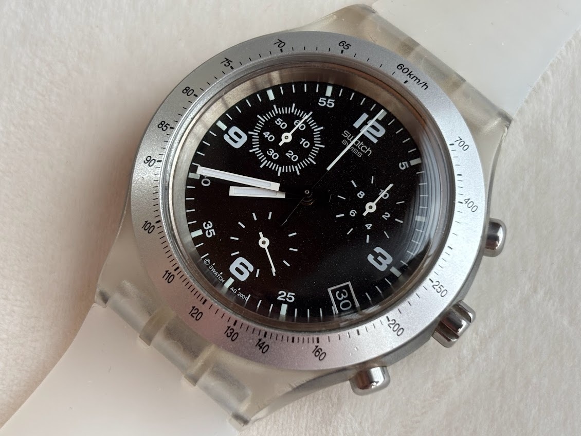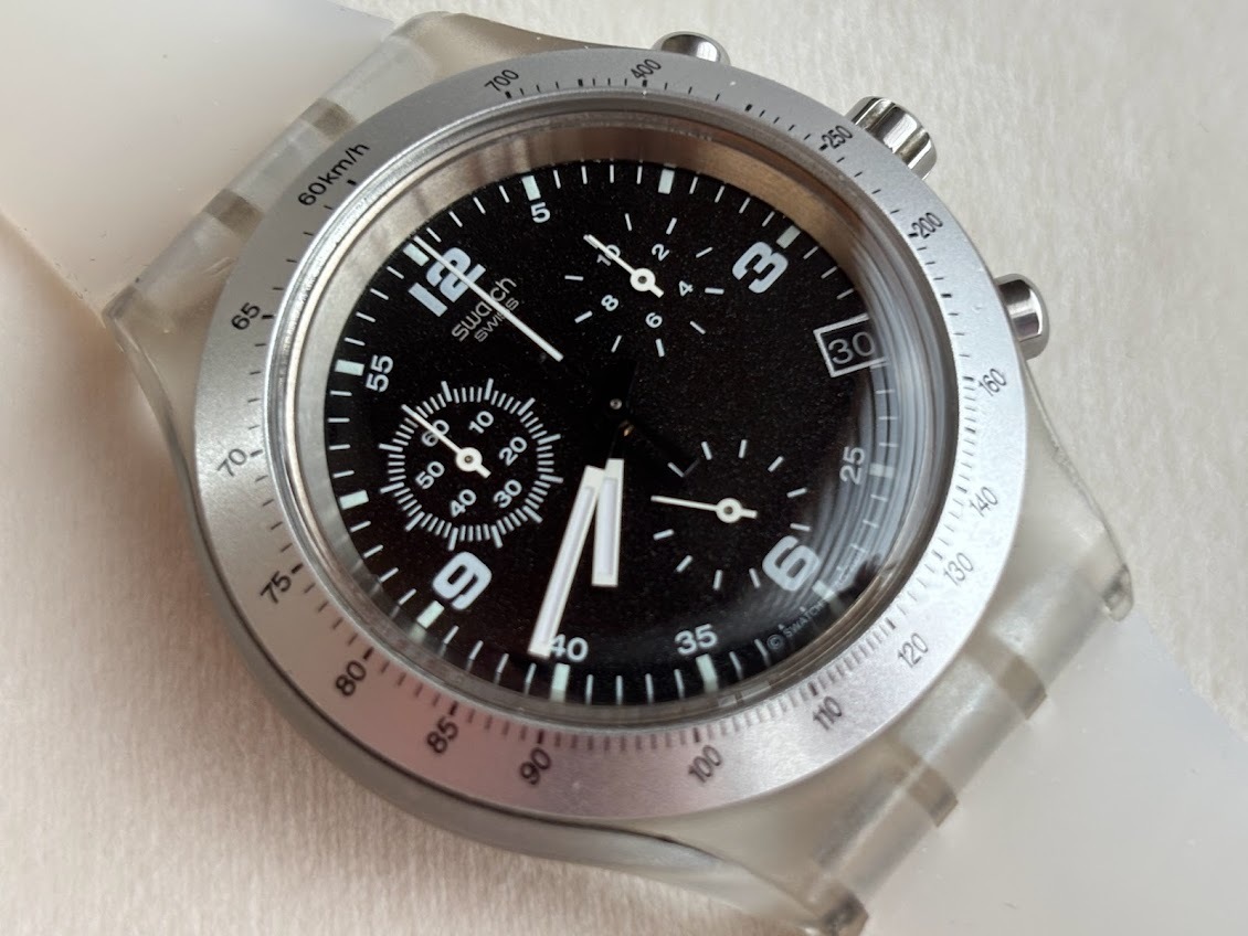 SWATCH  スウォッチ       IRONY アイロニー     CHRONO クロノ        Diaphane        ブラックダイアル         稼働品        美品