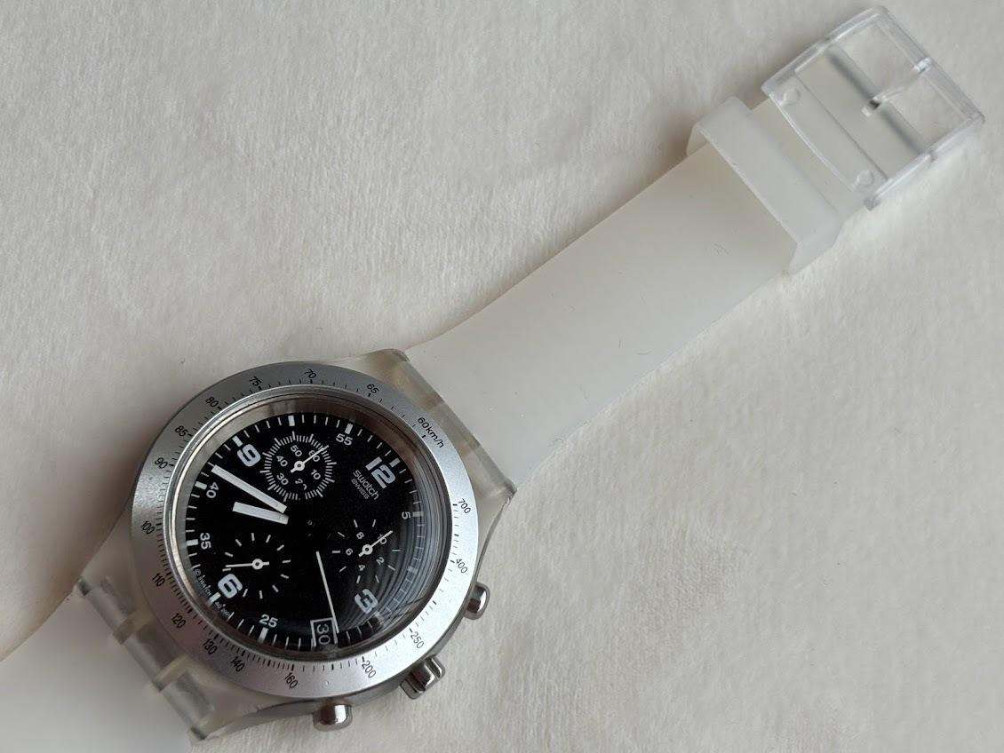 SWATCH スウォッチ    IRONY アイロニー    CHRONO クロノ    Diaphane    ブラックダイアル     稼働品    美品
