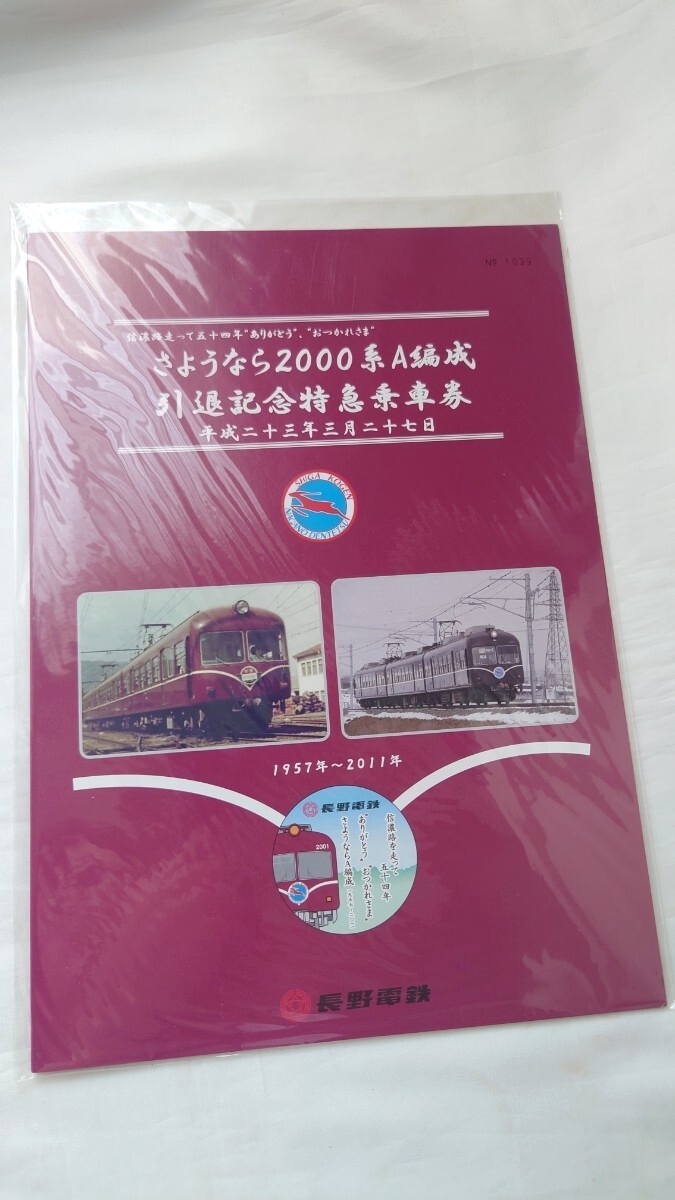 ▲長野電鉄▲さようなら2000系A編成 引退記念特急乗車券▲平成23年