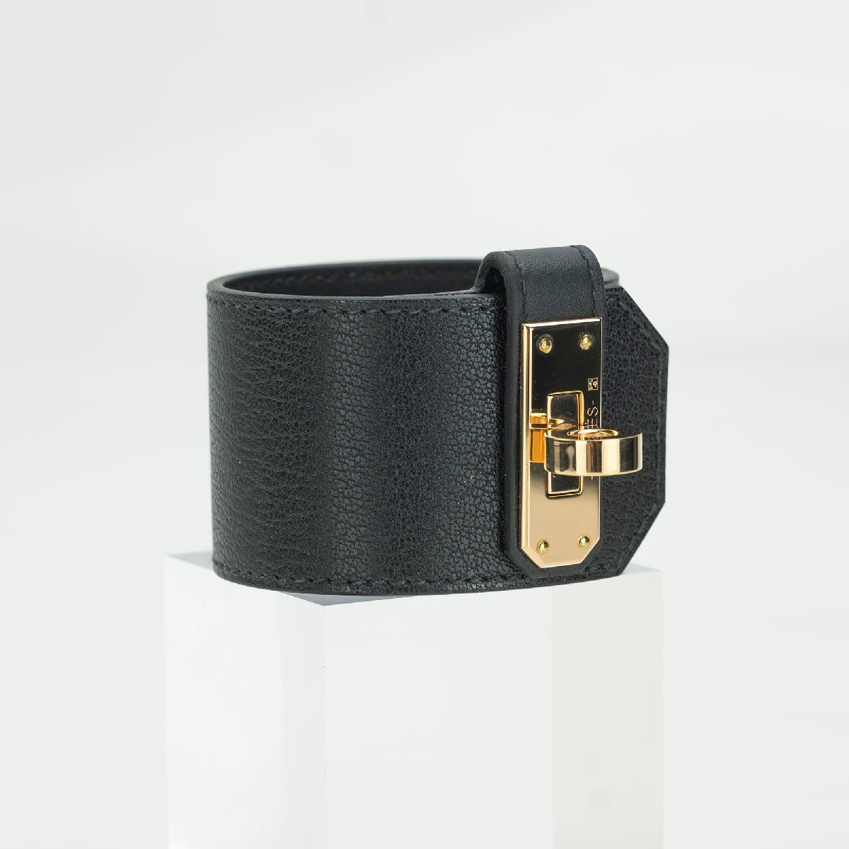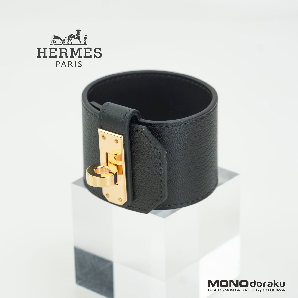 エルメス HERMES レザーブレスレット ケリー・ツイストGM ブラック×ゴールド B刻印 2023年