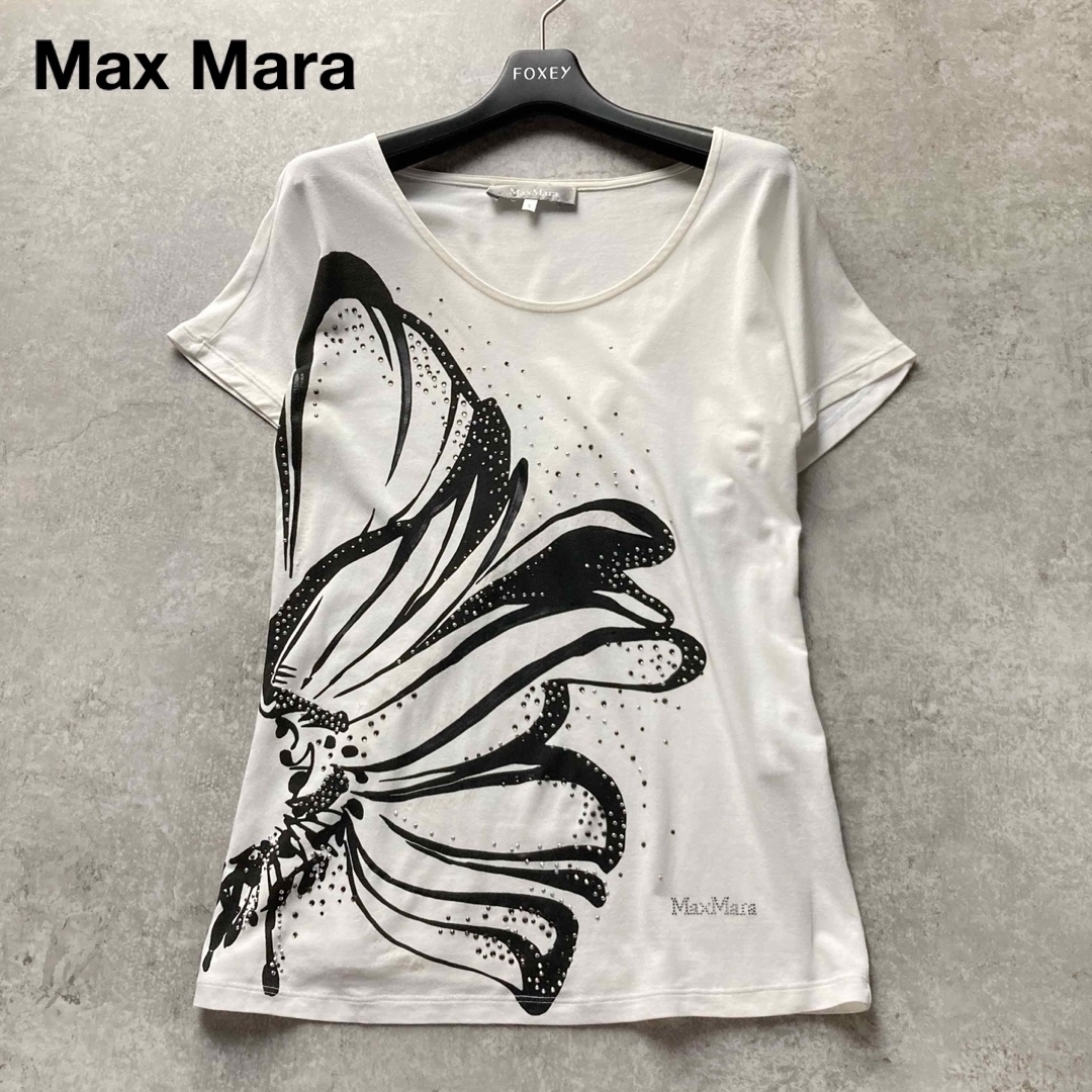 Max Mara マックスマーラ 高級銀タグ 半袖Tシャツ カットソー ドルマンスリーブ フラワープリント 花柄 ラインストーン ビジュー