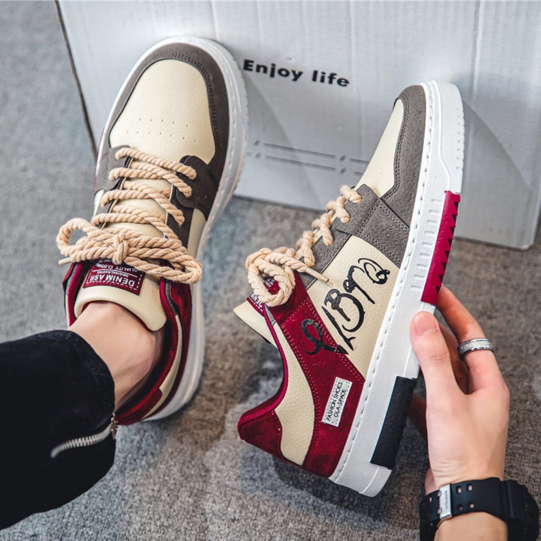 【新品・送料無料】靴 25.5cm 灰赤 スニーカー メンズ 靴 シューズ グレー レッド おしゃれ 人気 トレンド カジュアル ウォーキング 散歩