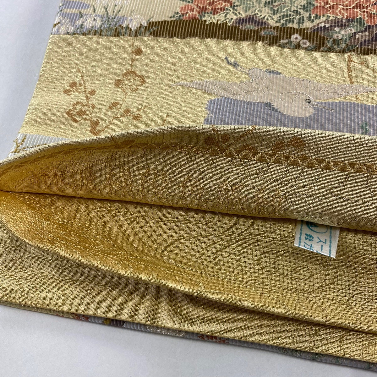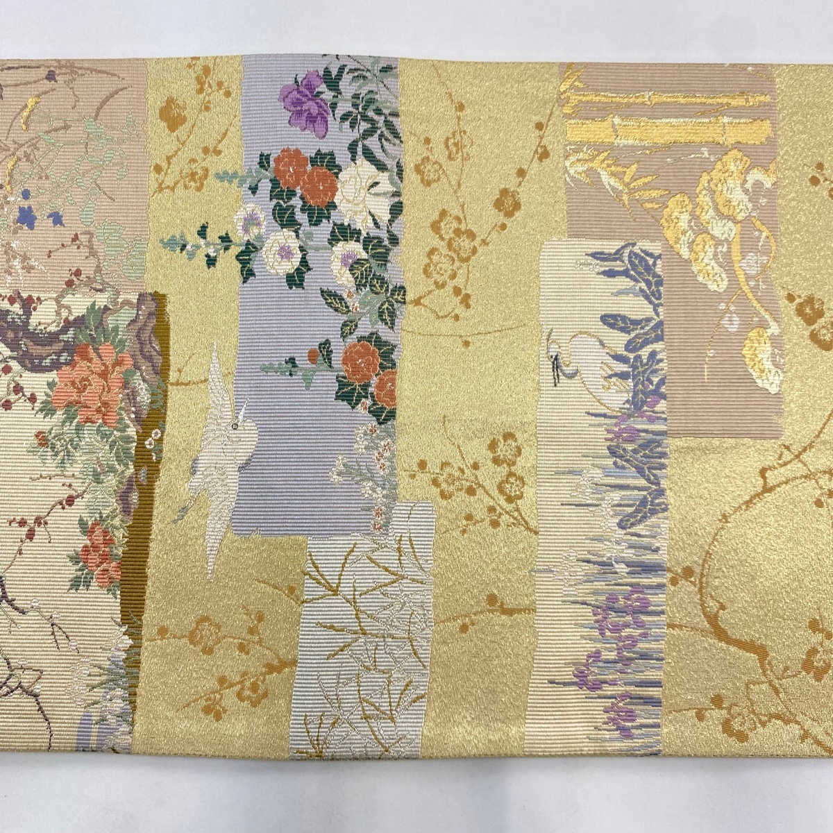 | 袋帯 秀品 鈴乃屋 琳派横段色紙紋 松竹梅 箔 ベージュ 六通 正絹 【中古】 |