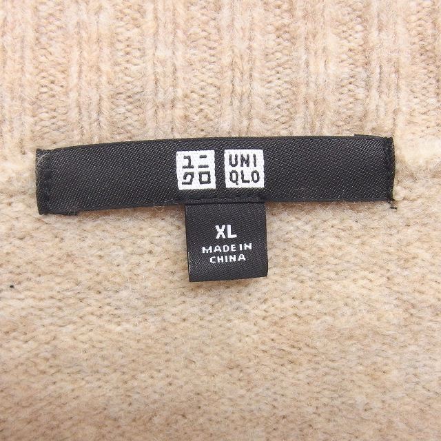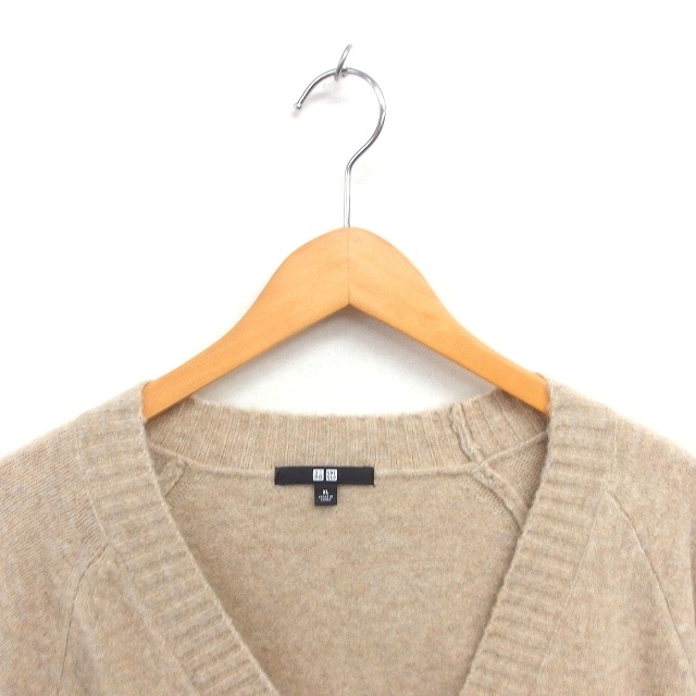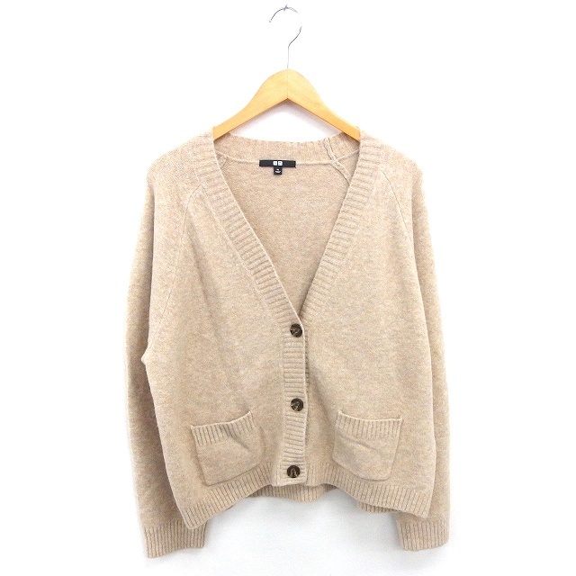 ユニクロ UNIQLO カーディガン ニット ウール混 厚手 ラグランスリーブ 長袖 XL ベージュ 茶 /TT レディース