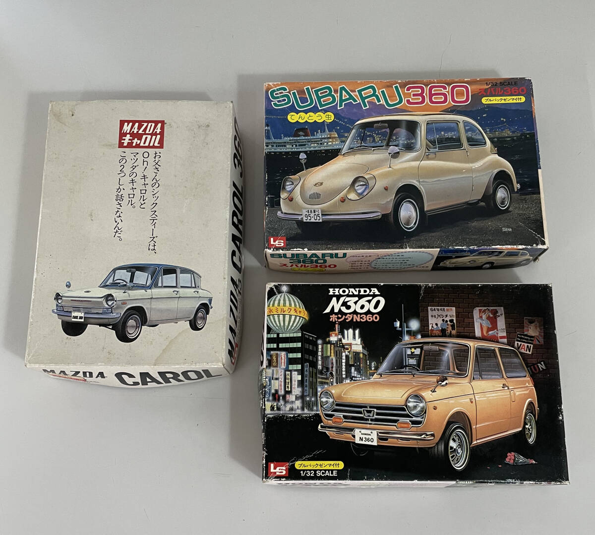 MAZDA キャロル360・SUBARU360・HONDA N360 プラモデル 3台まとめ/未組立